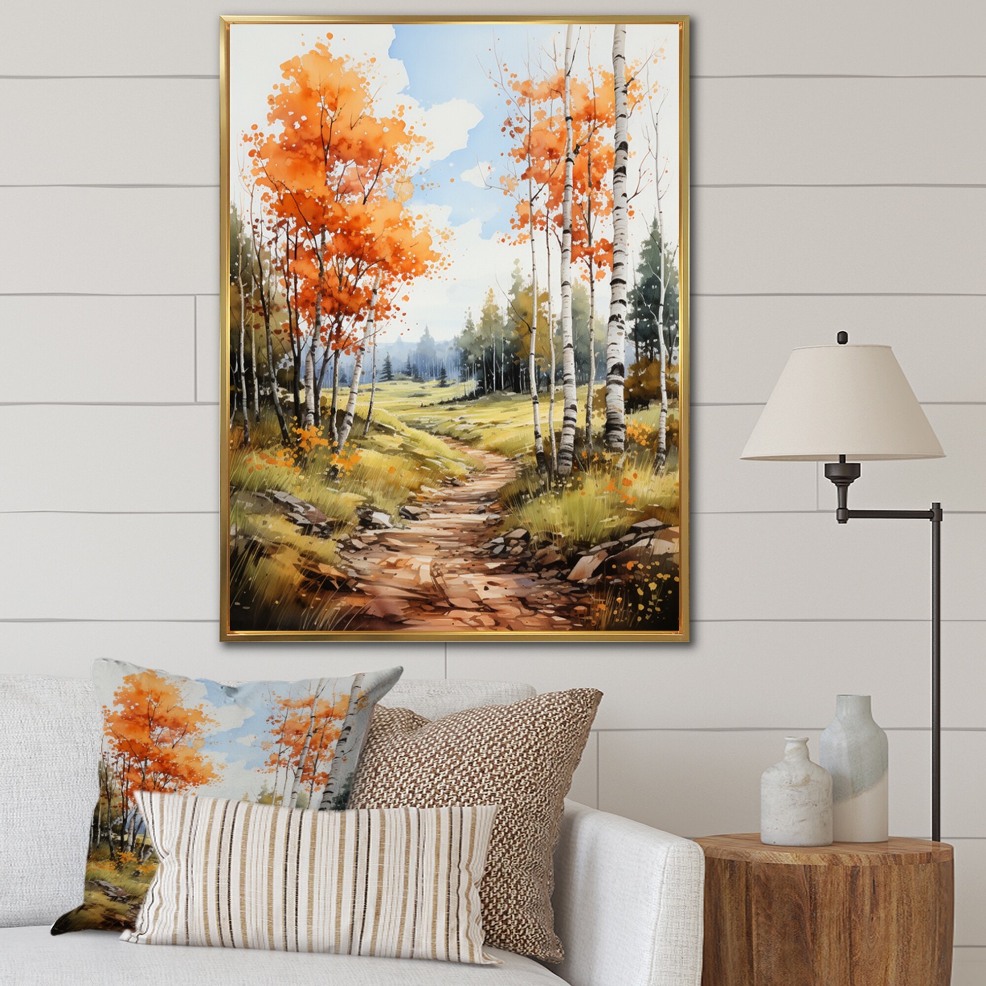 Designart "Birch Woods Autumn Whispers V" Tree Birch Framed Wall Art Living Room