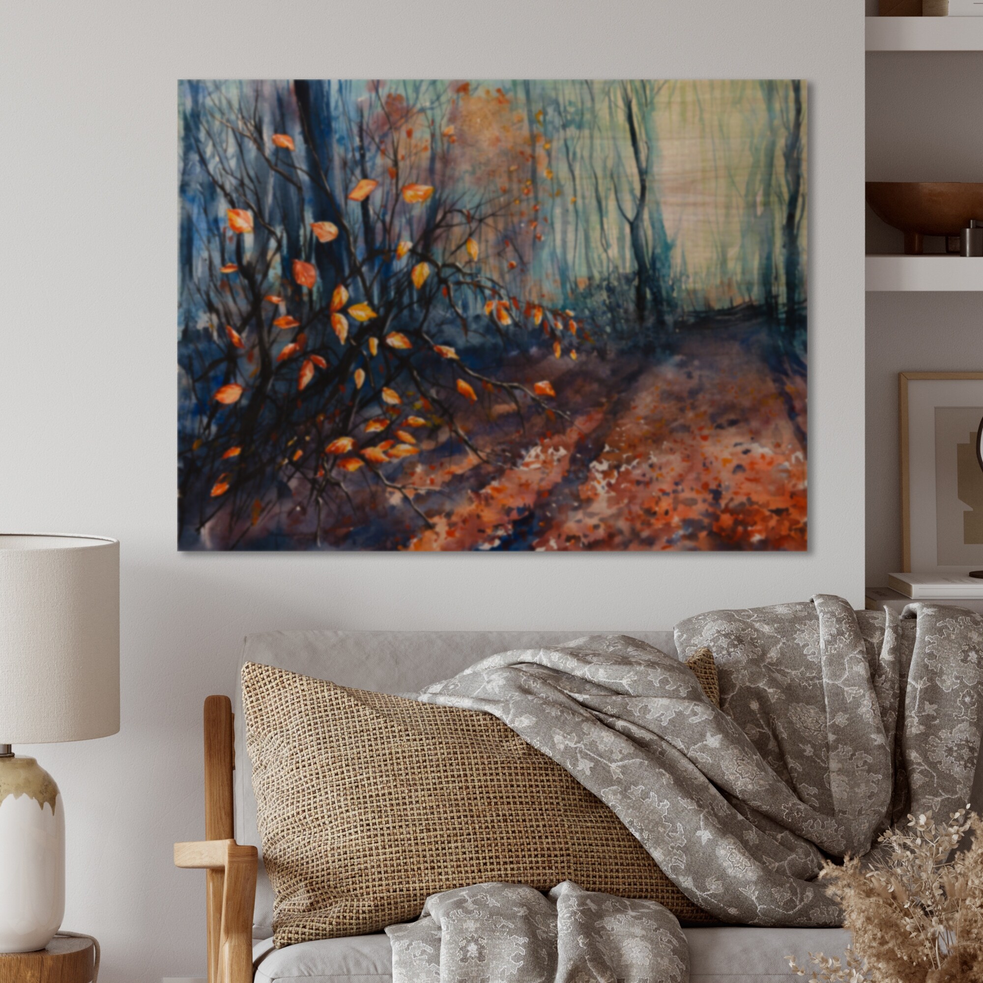 Designart 'Mystic Autumn Forest Painting' Traditional Wood Wall Art - Natural Pine Wood