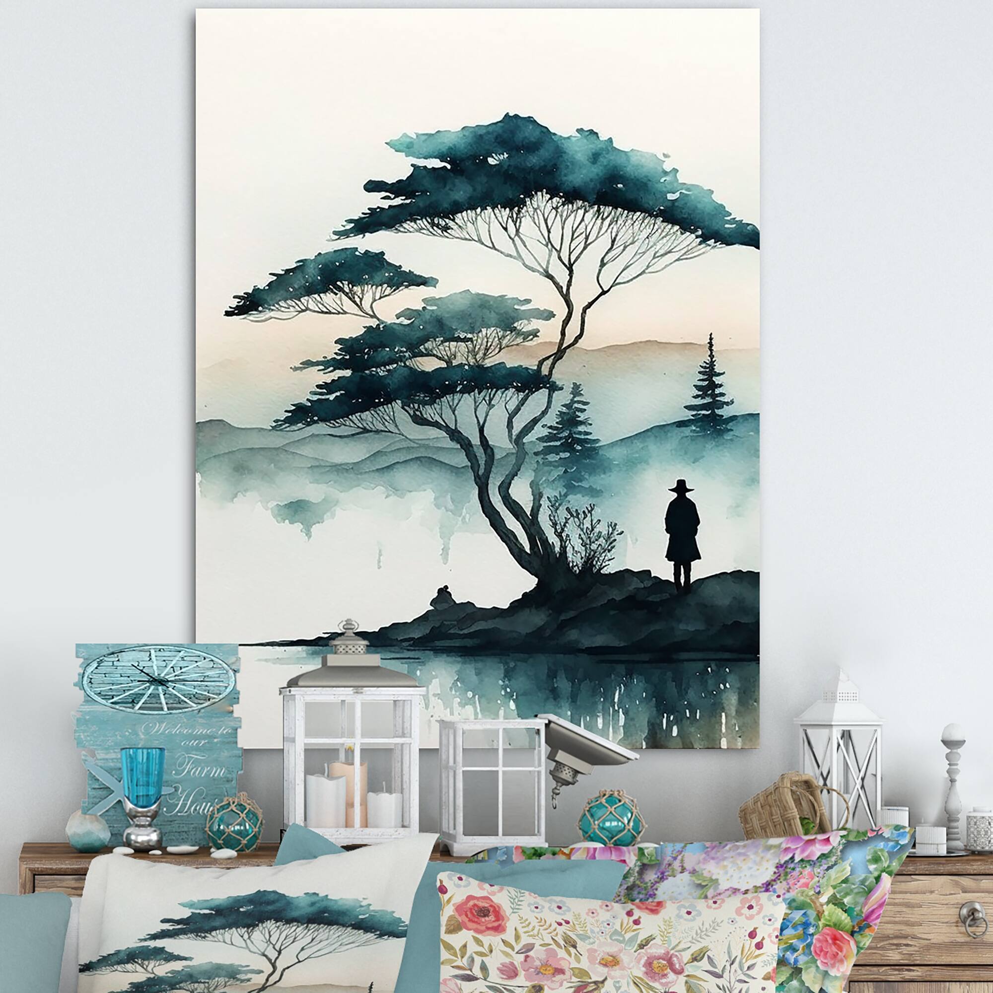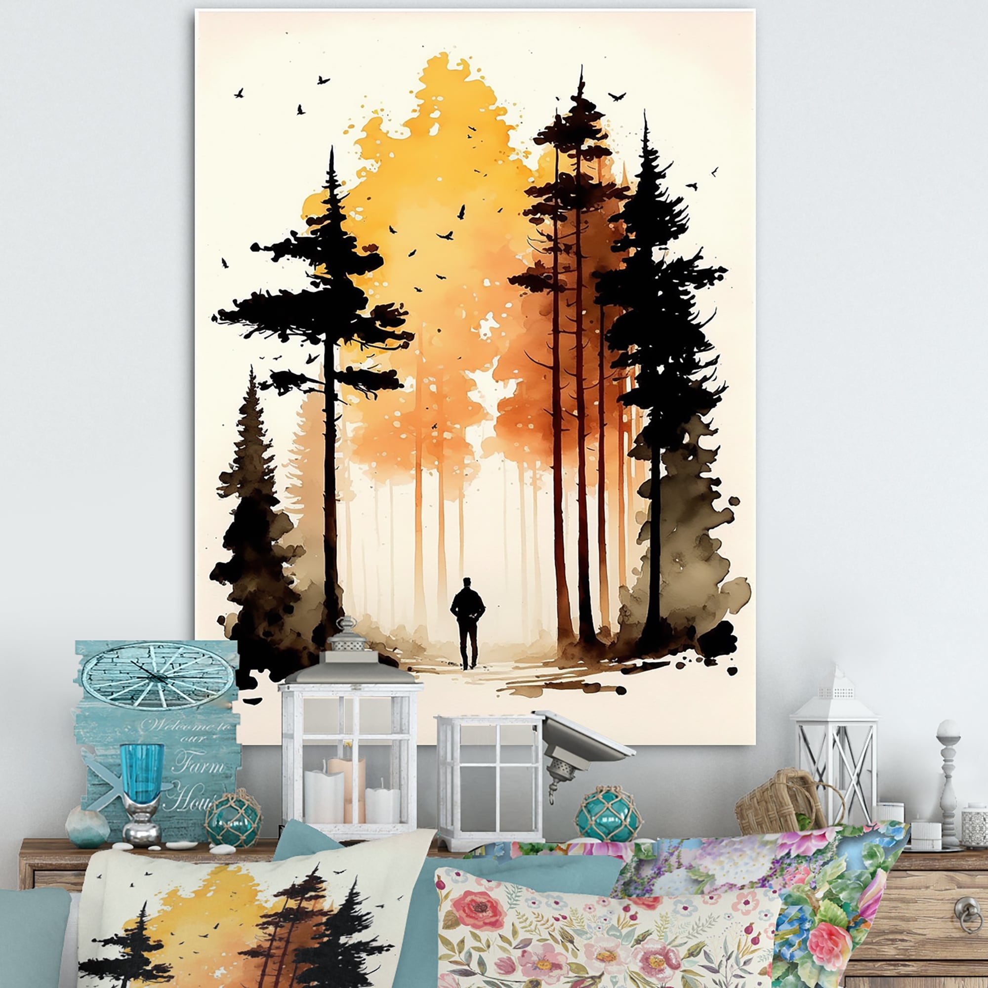 Designart "Solitude Watercolor Man in the Autumn Woods III" Landscape Forest Canvas Wall Art