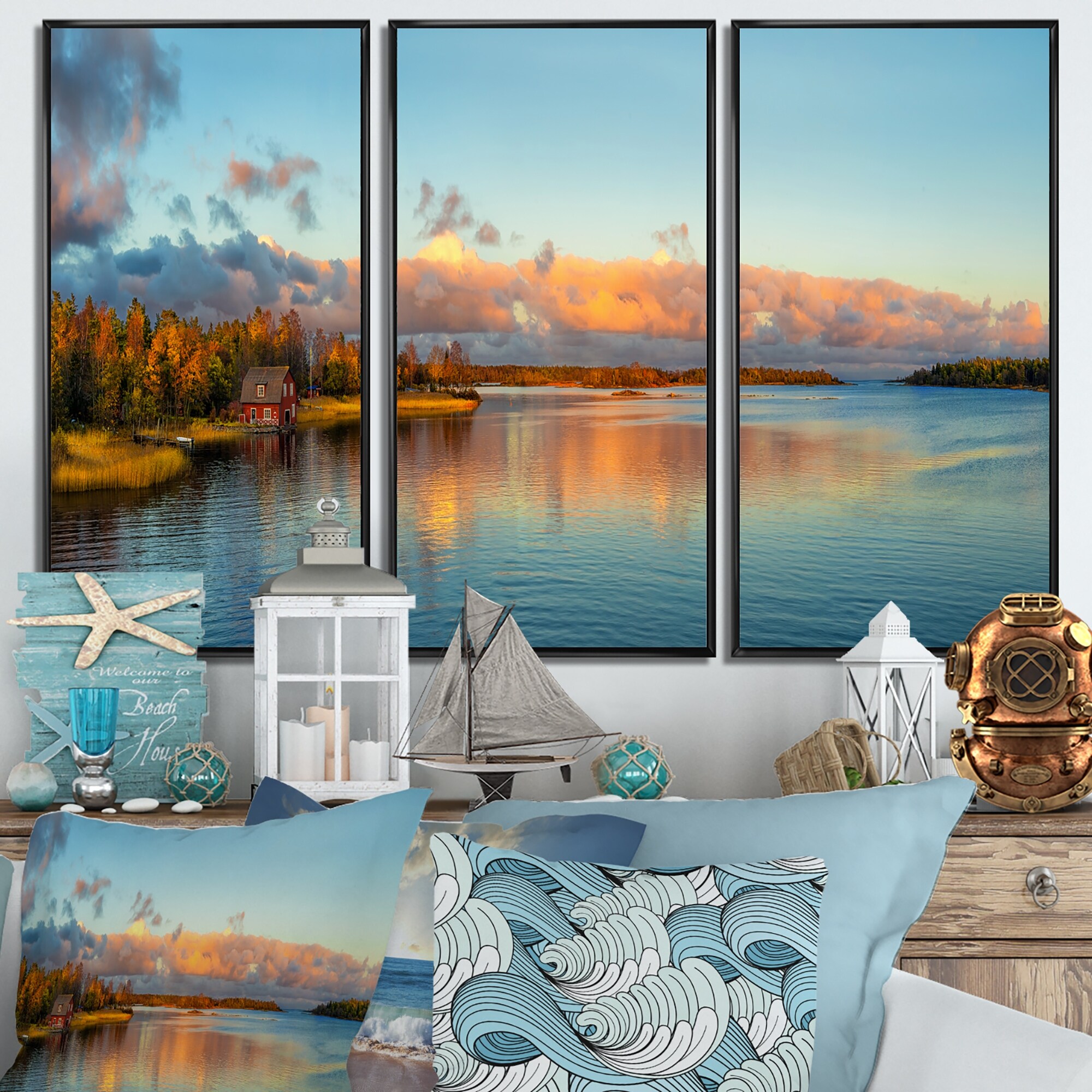 Designart "Autumn Sunset Panorama" Landscape Framed Wall Decor Set of 3 - 4 Colors of Frames