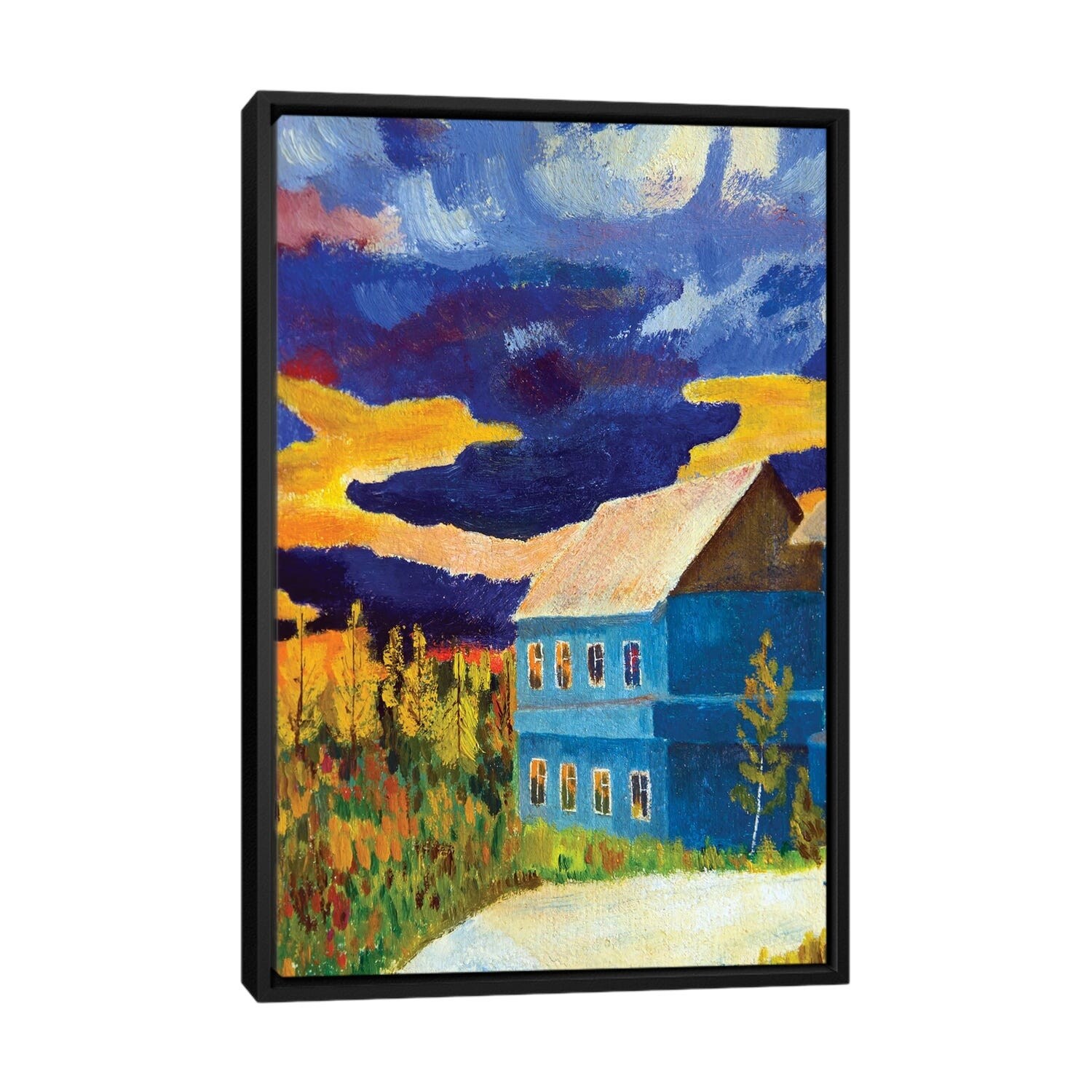 iCanvas "Autumn Landscape With A House on the Background of a Storm Sky At Sunset" by kharhan Framed Canvas Print