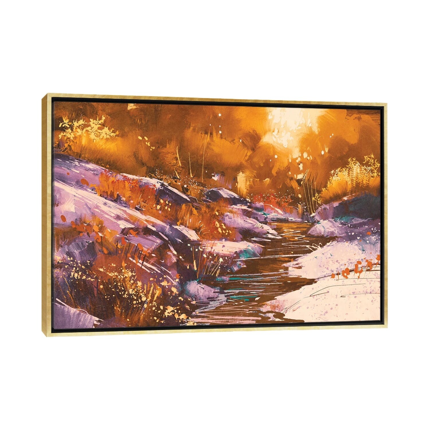 iCanvas "River Lines With Stones in Autumn Forest" by grandfailure Framed Canvas Print