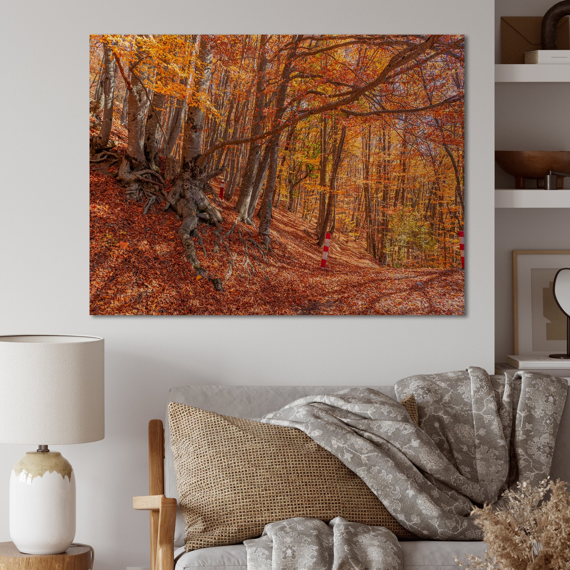Designart 'Autumn Forest Photo' Traditional Wood Wall Art Décor - Natural Pine Wood