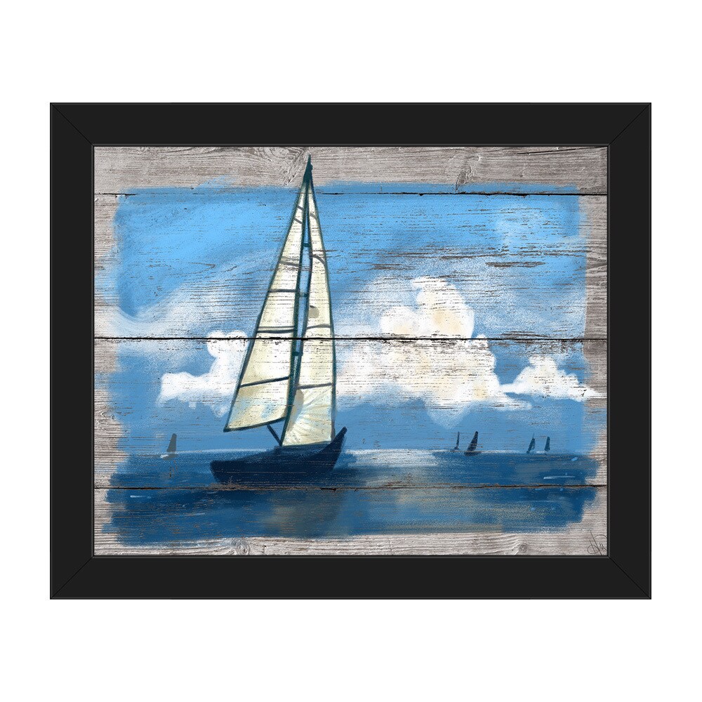 Sailing Away' Blue Canvas Wall Art with Black Frame