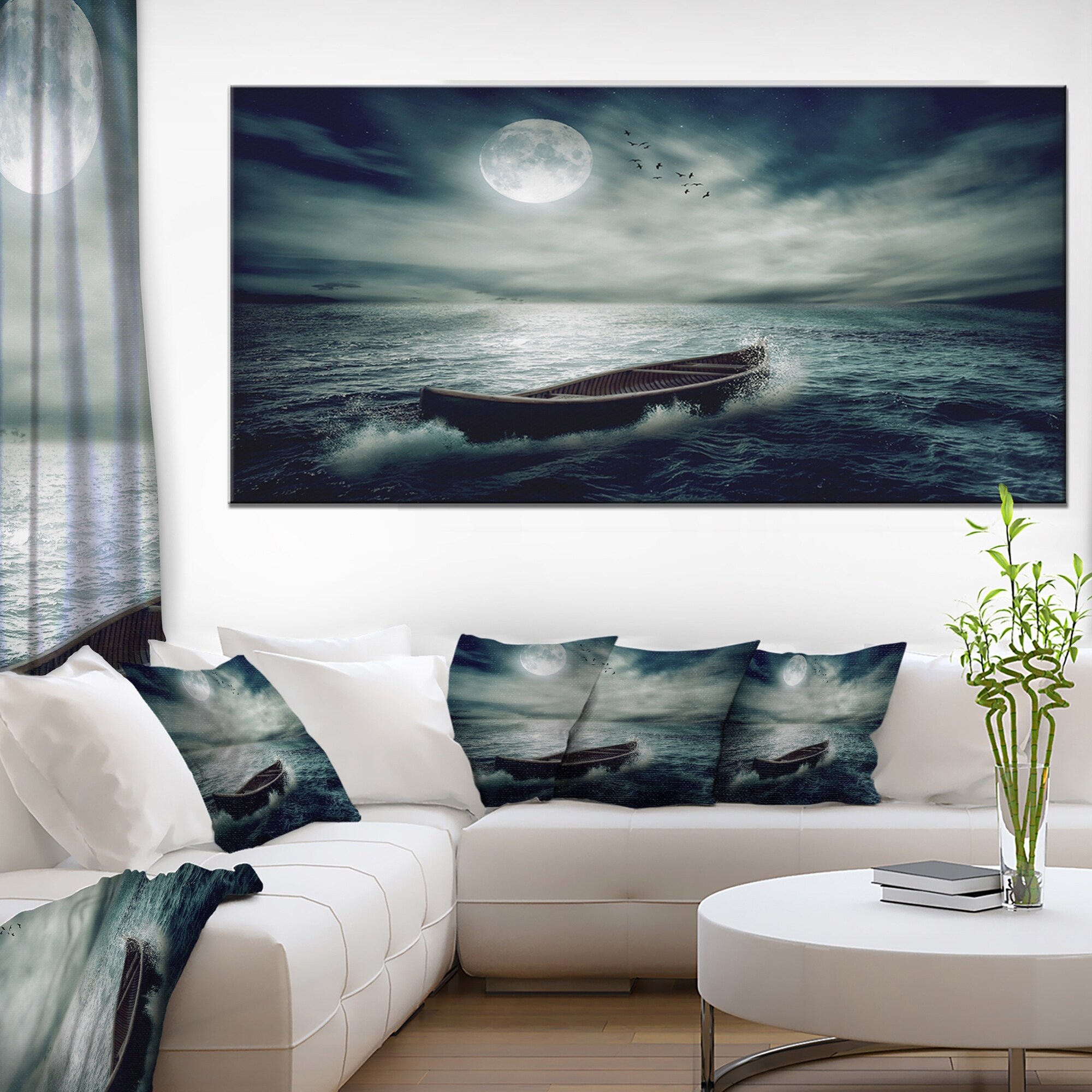 Designart "Boat Drifting Away After Storm" Modern Seashore Canvas Wall Art Print