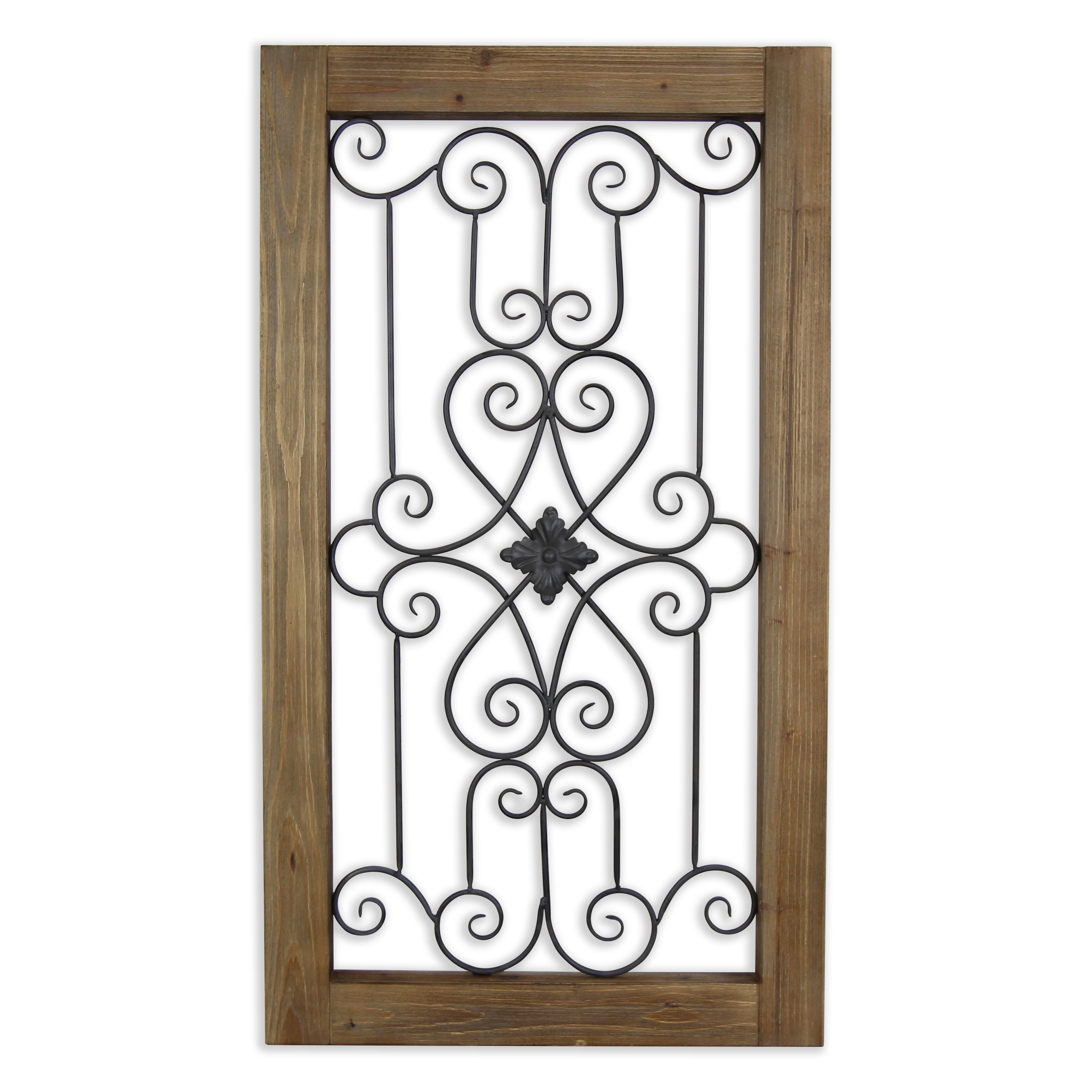 Brown Wood Frame Wall Decor with Decorative Iron Bars