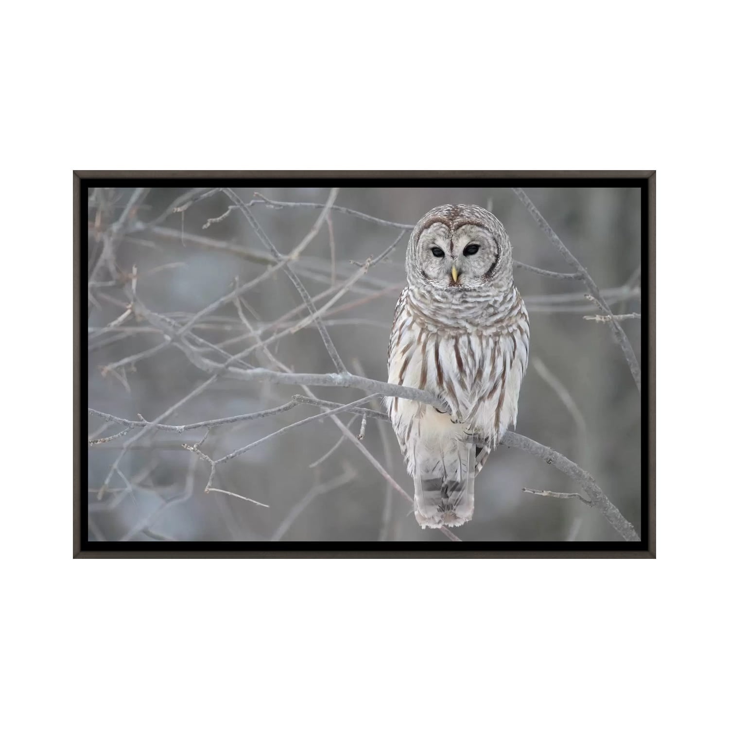 iCanvas "Barred Owl on Branches" by Unknown Artist Framed Canvas Print