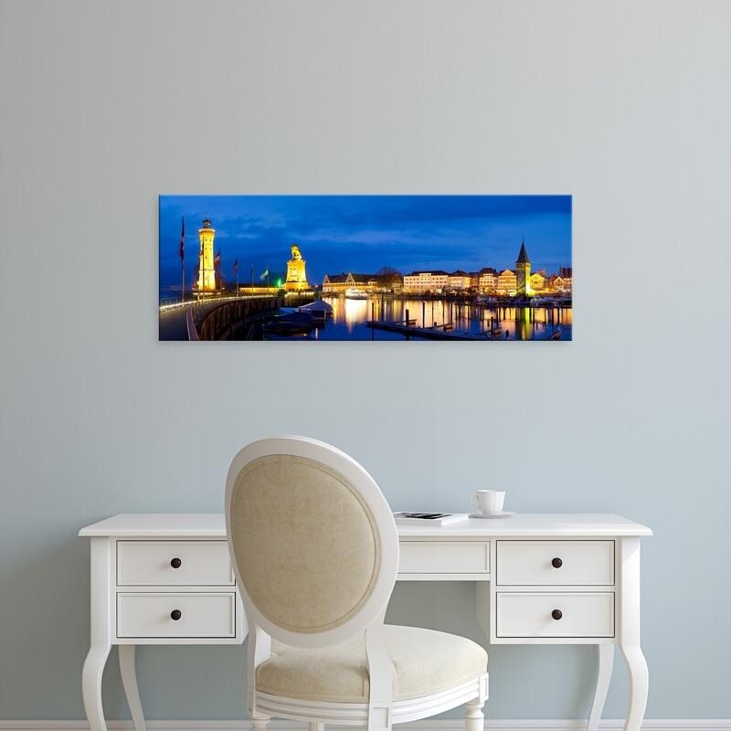 Easy Art Prints Panoramic Image 'Historic Port at night, Lindau, Lake Constance, Swabia, Bavaria, Germany' Canvas Art