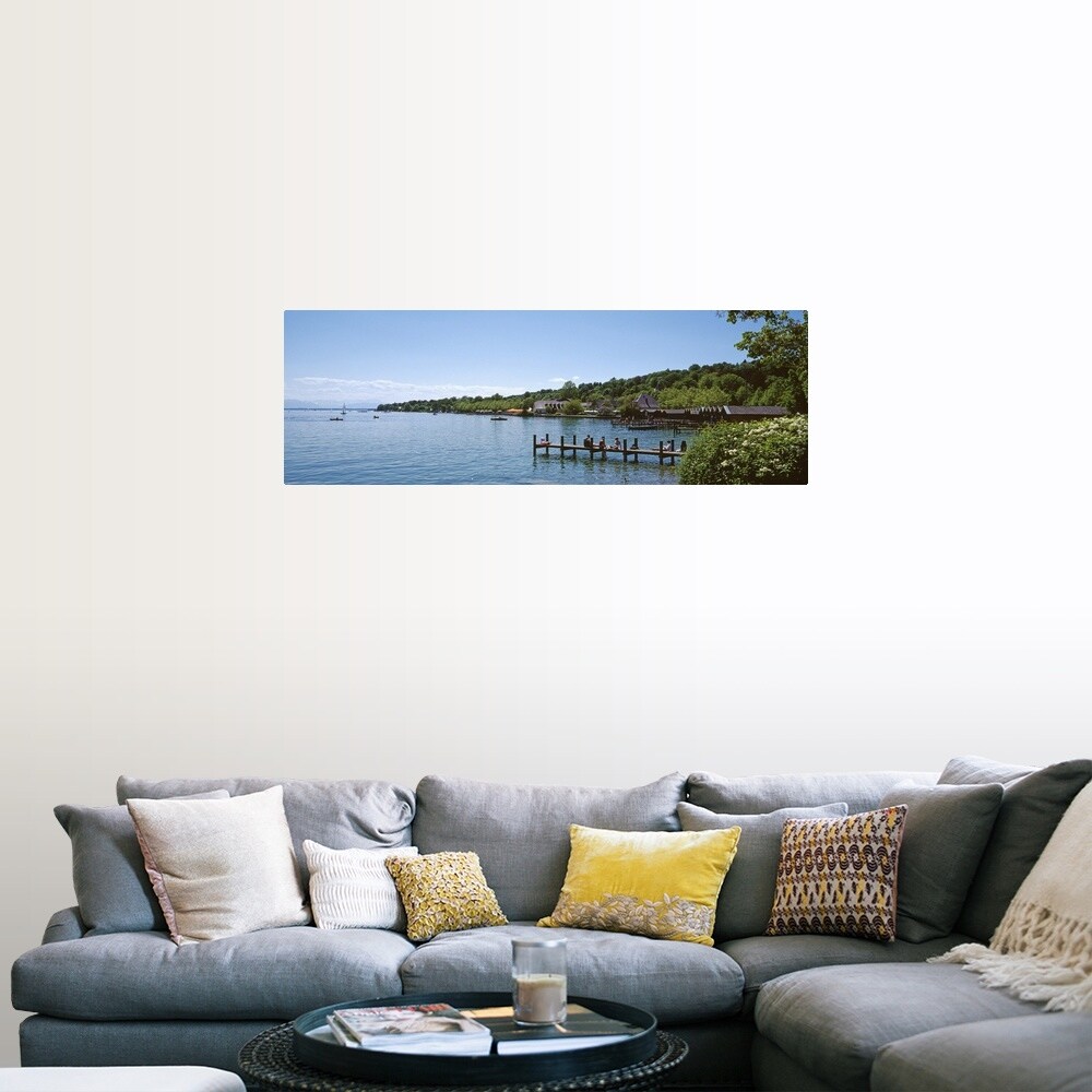"People sitting on a jetty Lake Starnberg Starnberg Oberbayern Bavaria Germany" Poster Print - Multi