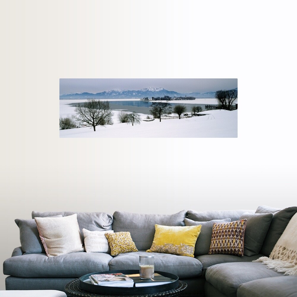 "Frozen lake in front of snowcapped mountains, Chiemsee, Bavaria, Germany" Poster Print