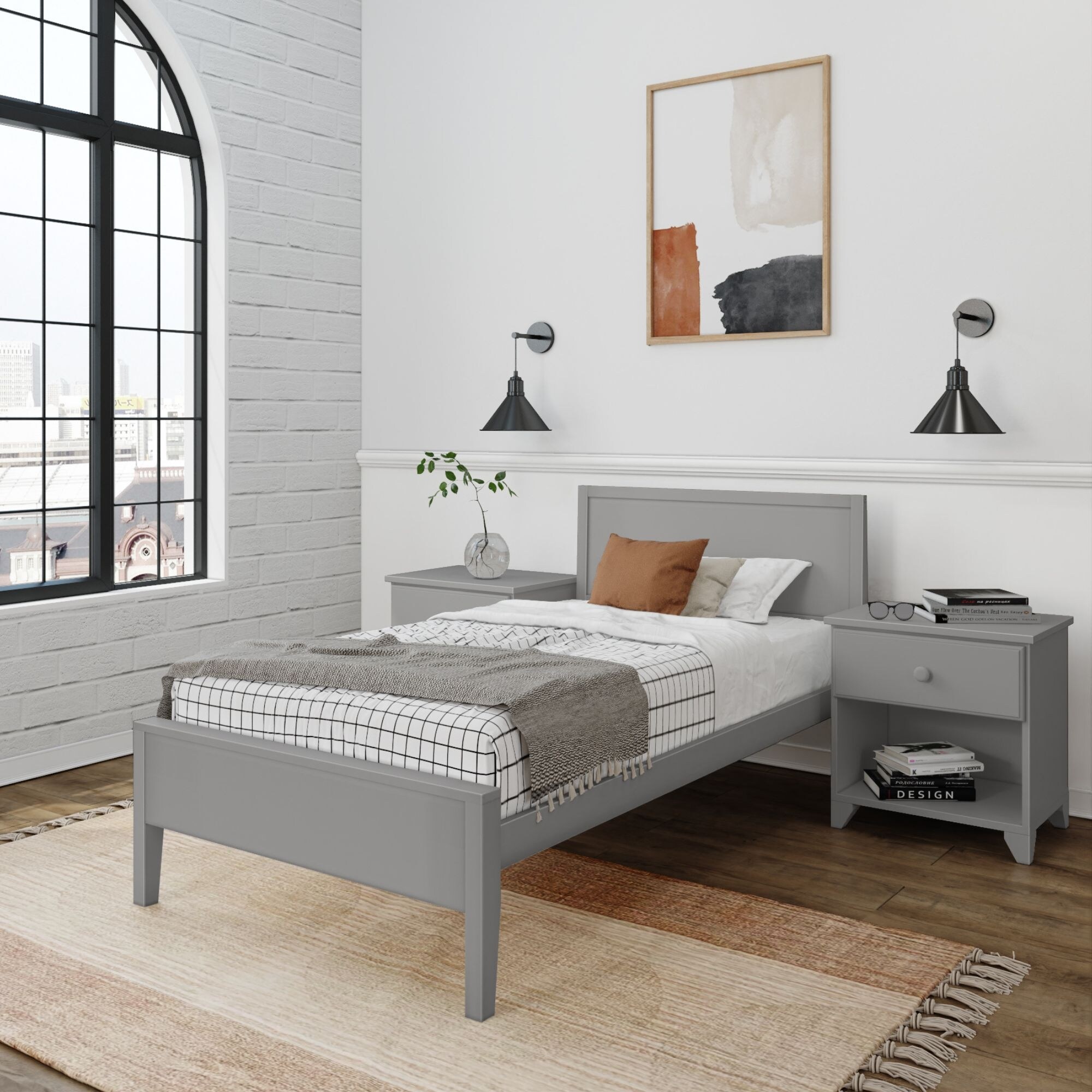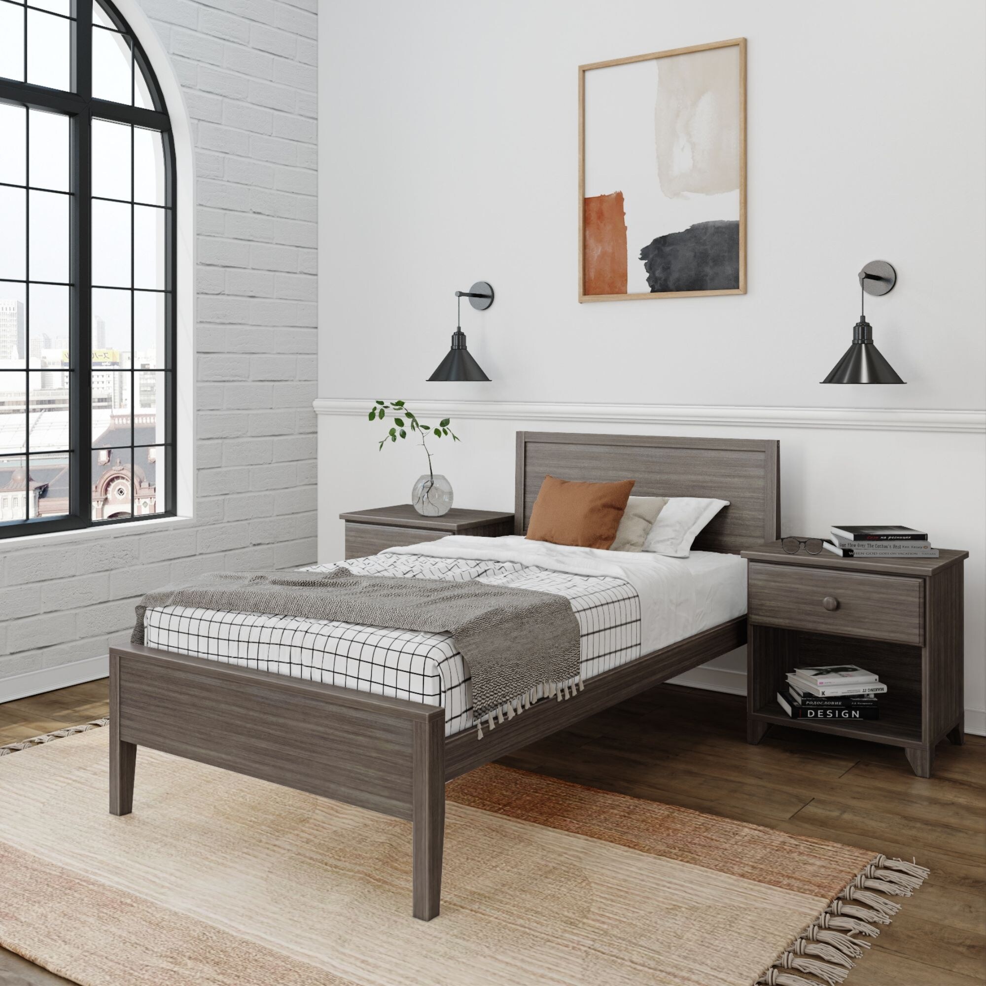 Plank and Beam Twin-Size Bed with Panel Headboard