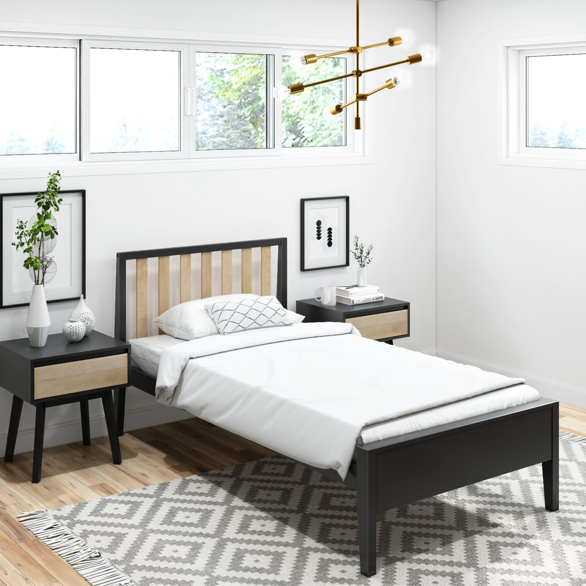 Plank and Beam Scandinavian Twin Size Bed with Slatted Headboard
