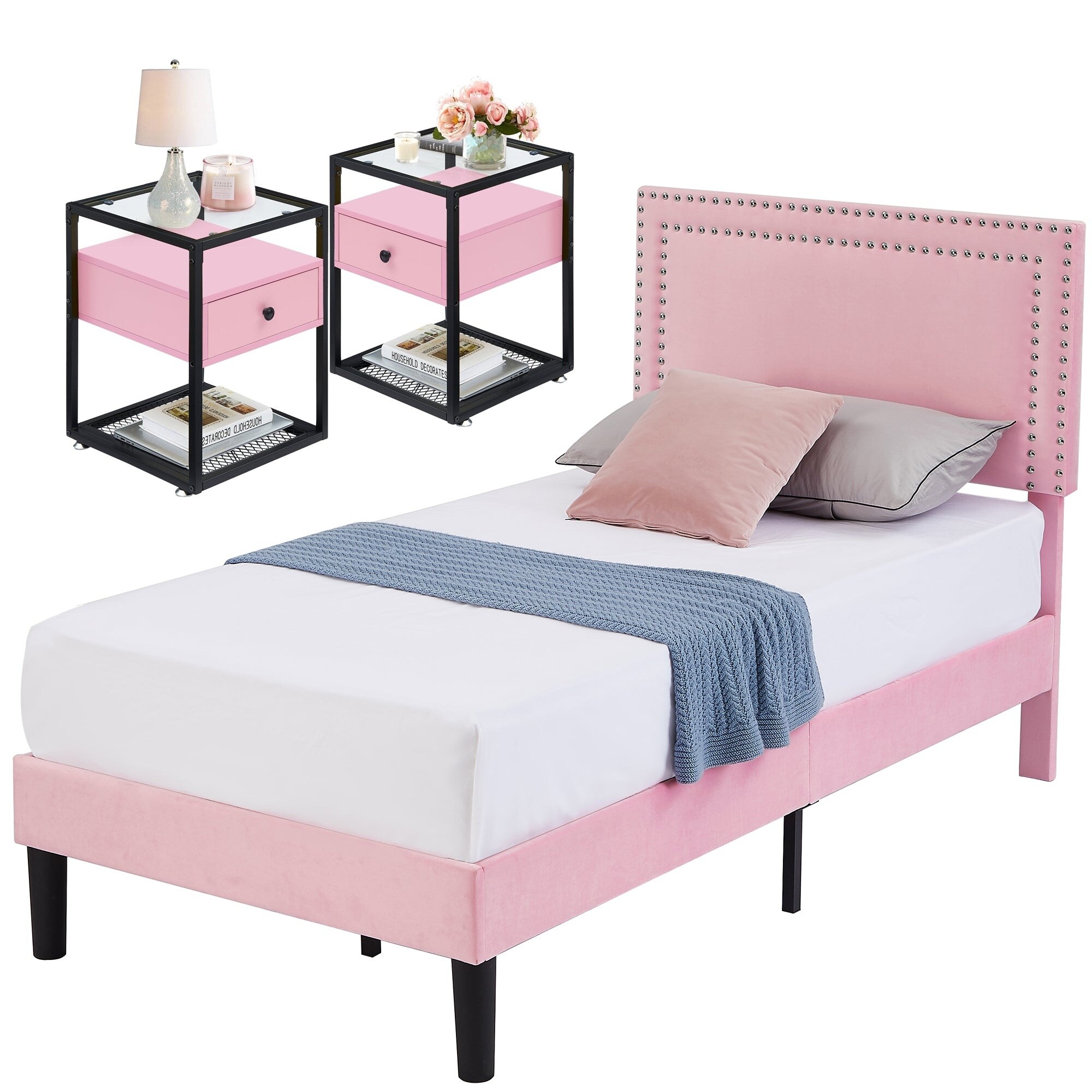 Taomika 3 Pieces Metal Platform Bed Frame with Modern Nightstands Sets