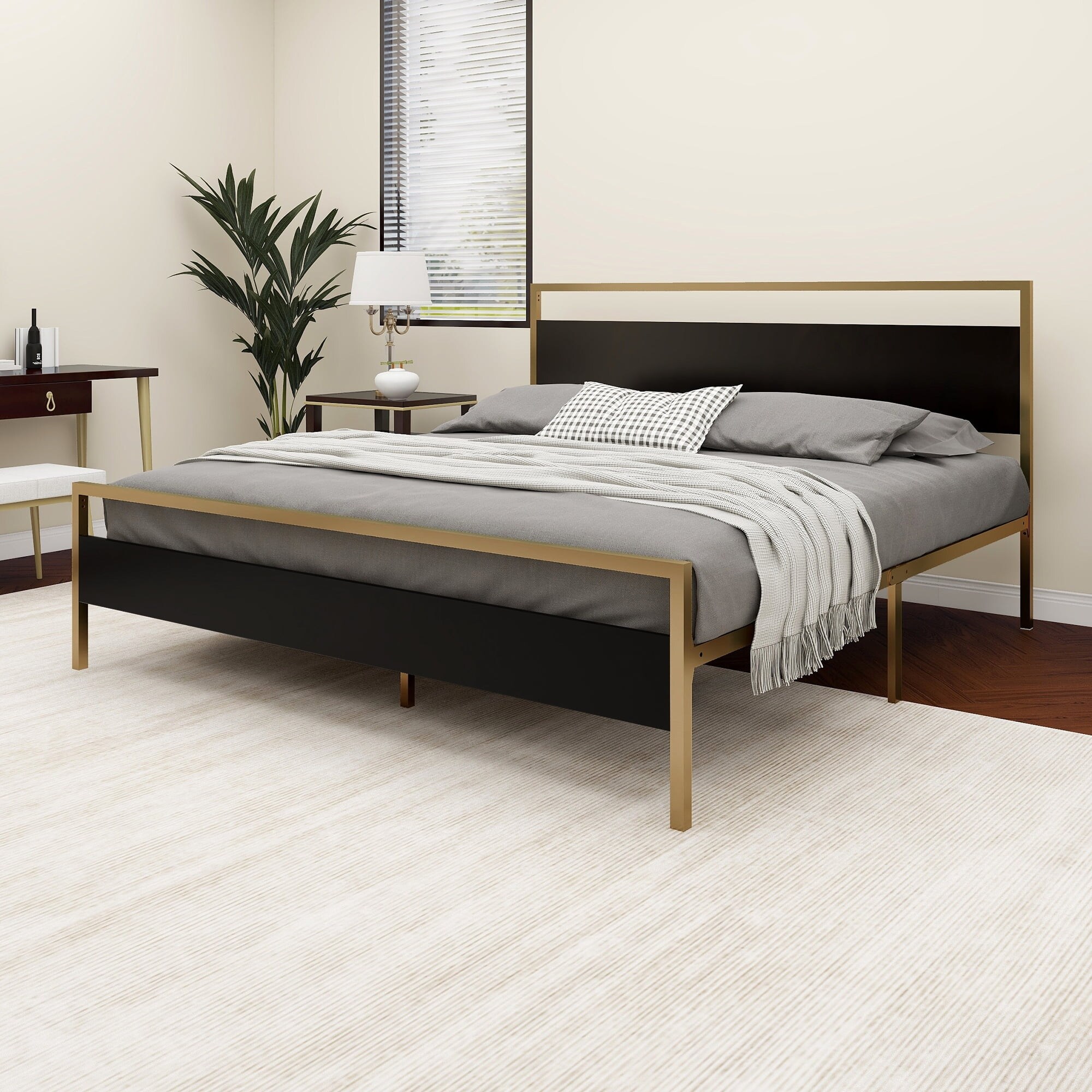 Metal bed frame platform with headboard and footboard