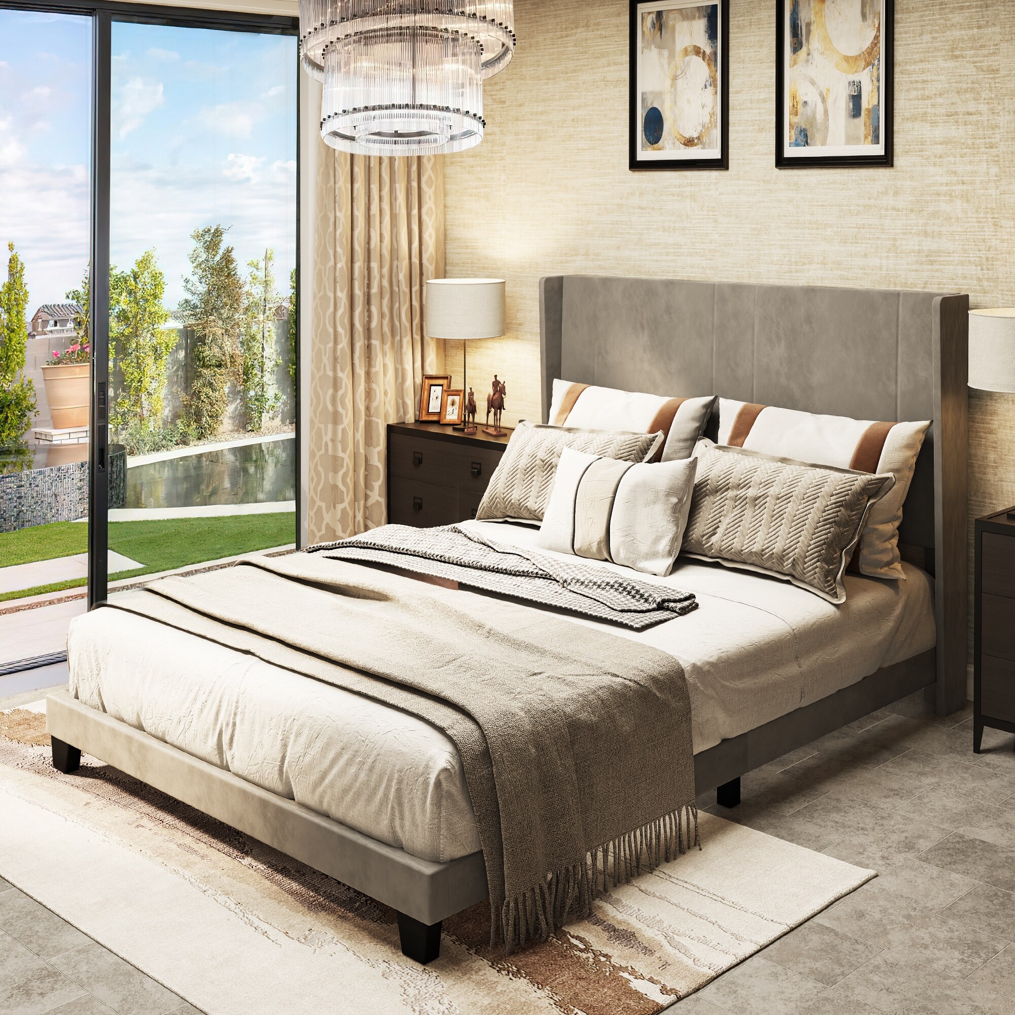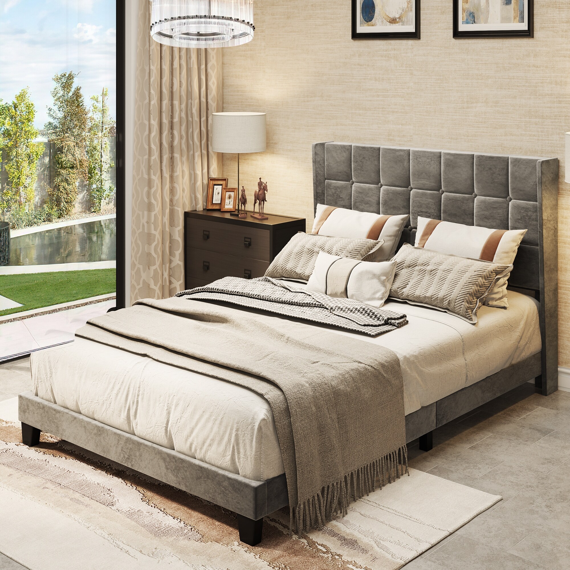 Modern Velvet Upholstered Platform Bed Frame