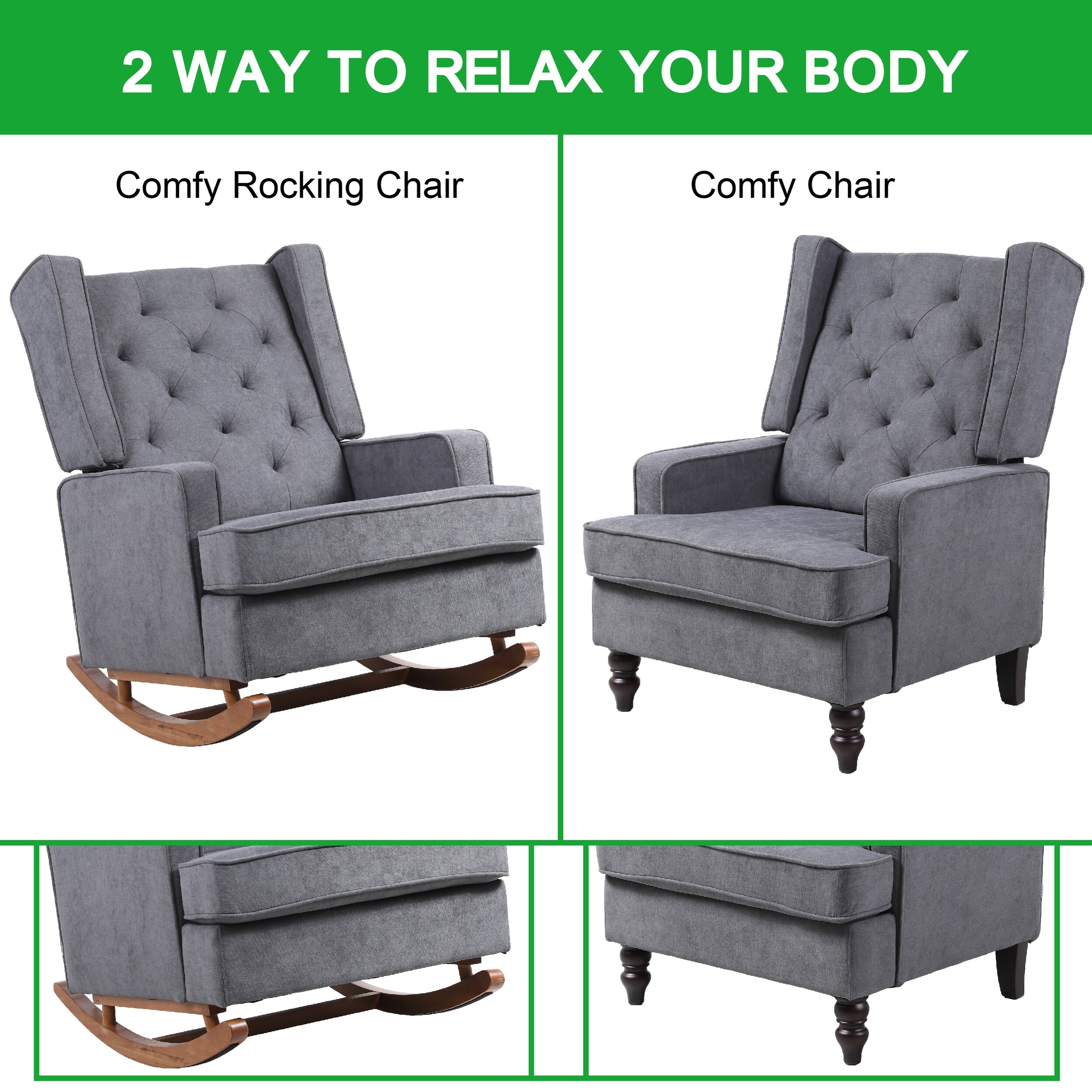 30.7"Polyster Fabric Upholstered Rocking Chair with Button Tufted Back, Soft Cushion and Side Pocket for Living Room, Bedroom