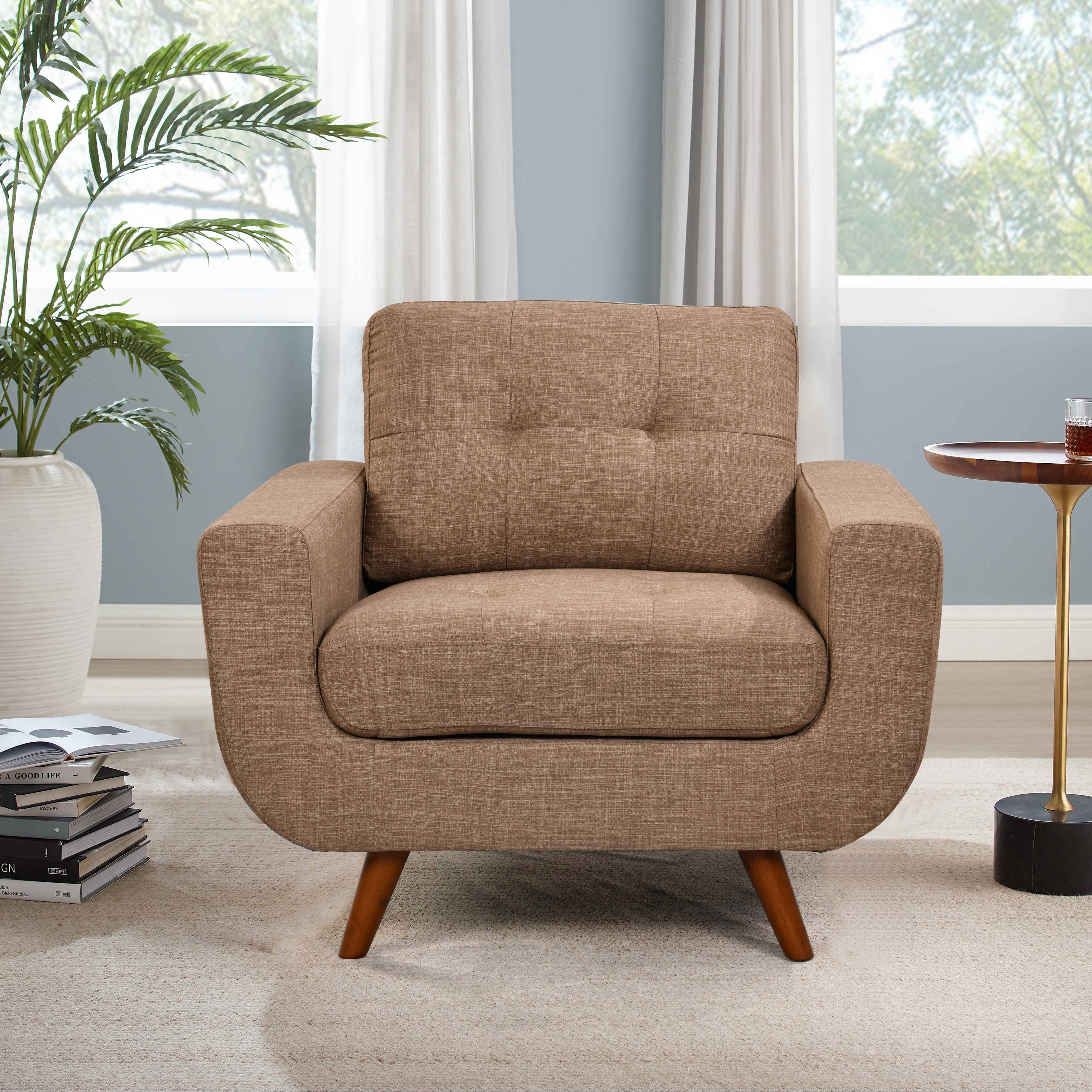 Accent Chairs for Bedroom, Modern Accent Arm Chair for Living Room, Linen Fabric Comfy Reading Tufted Comfortable