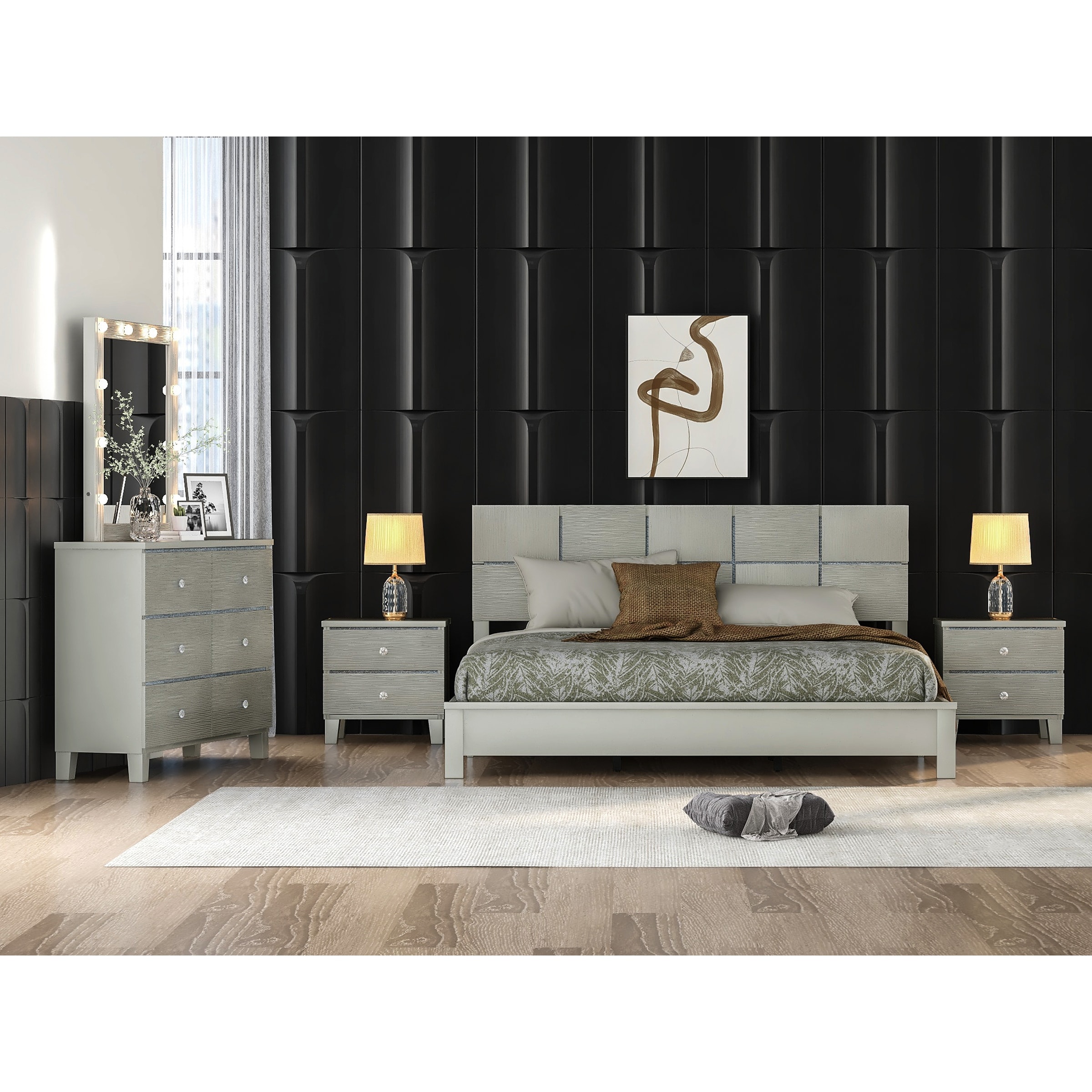 5-Pieces Champagne Silver Wooden Bedroom Sets