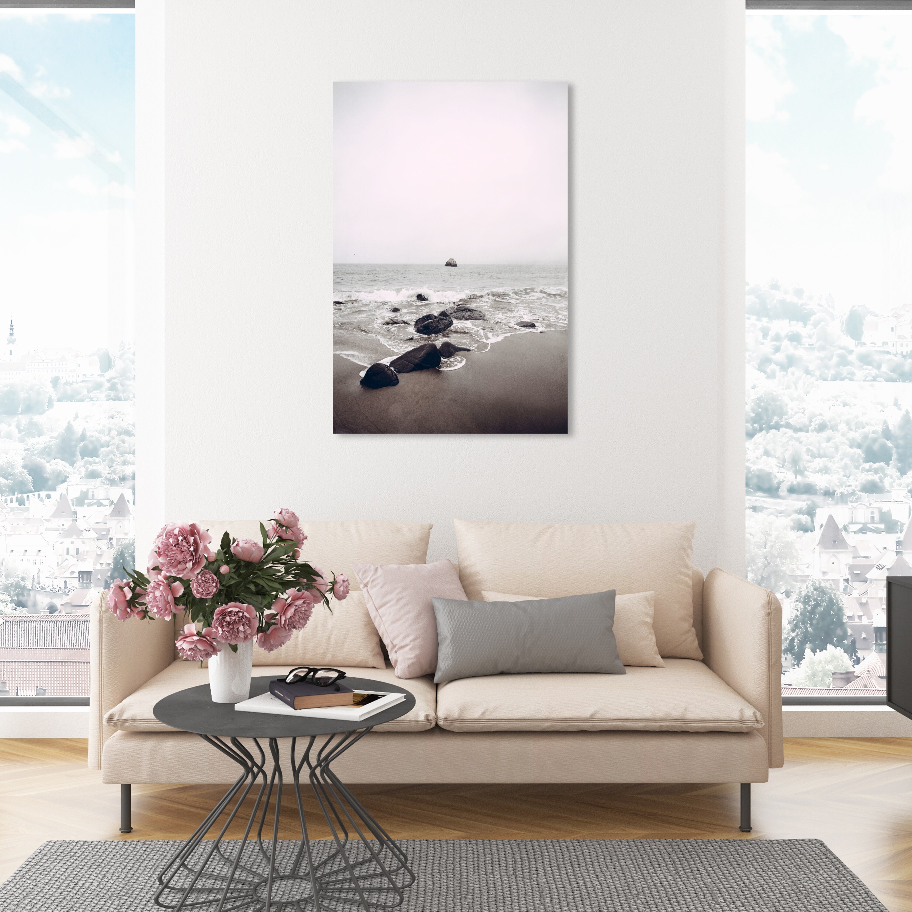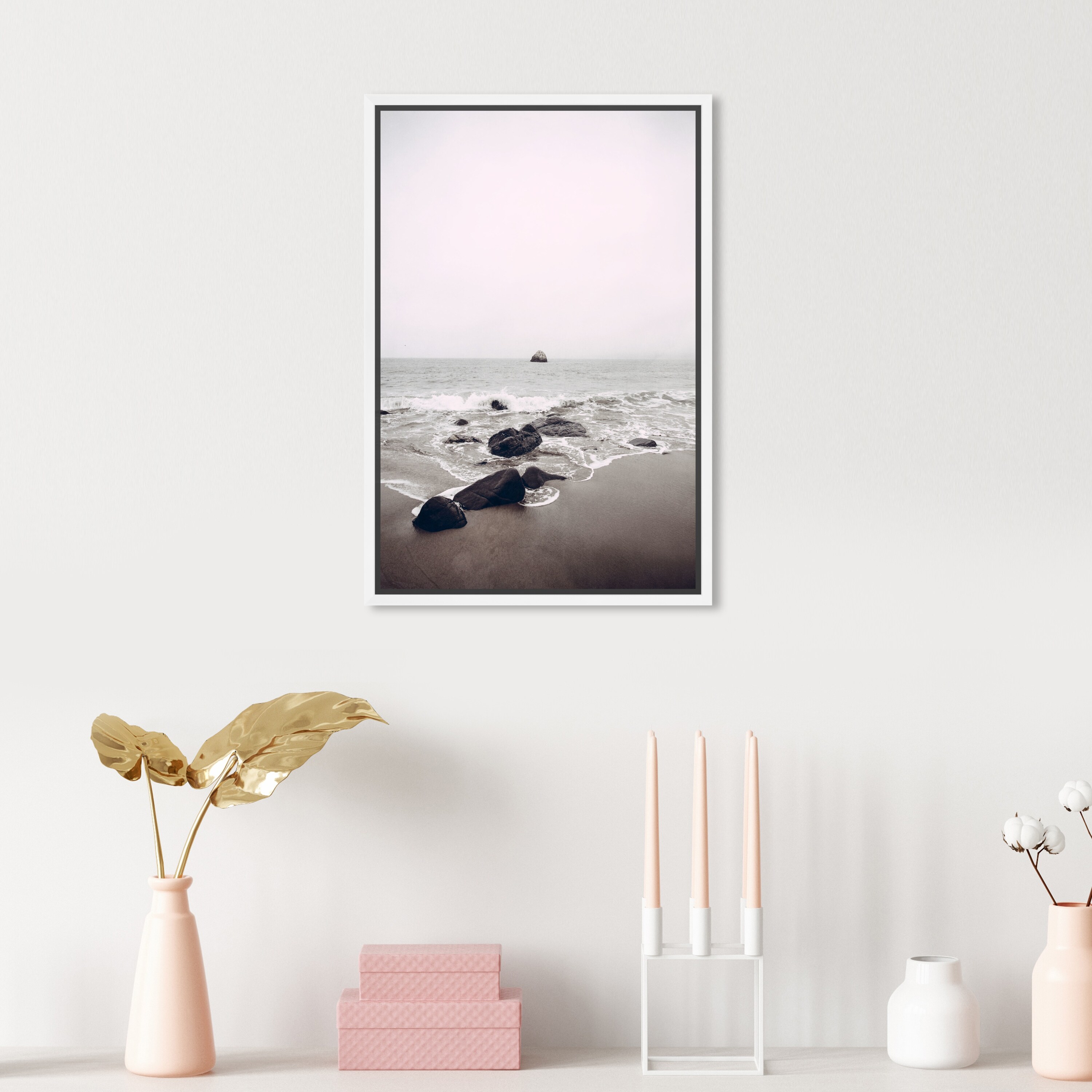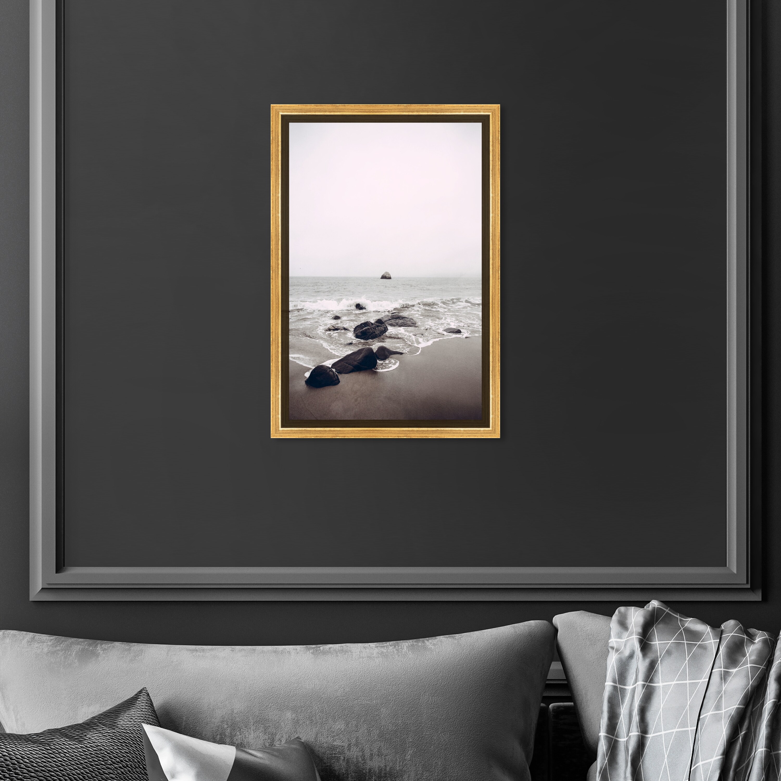 Oliver Gal 'Beyond the Rocks' Nature and Landscape Wall Art Framed Canvas Print Coastal Landscapes - Gray, Brown