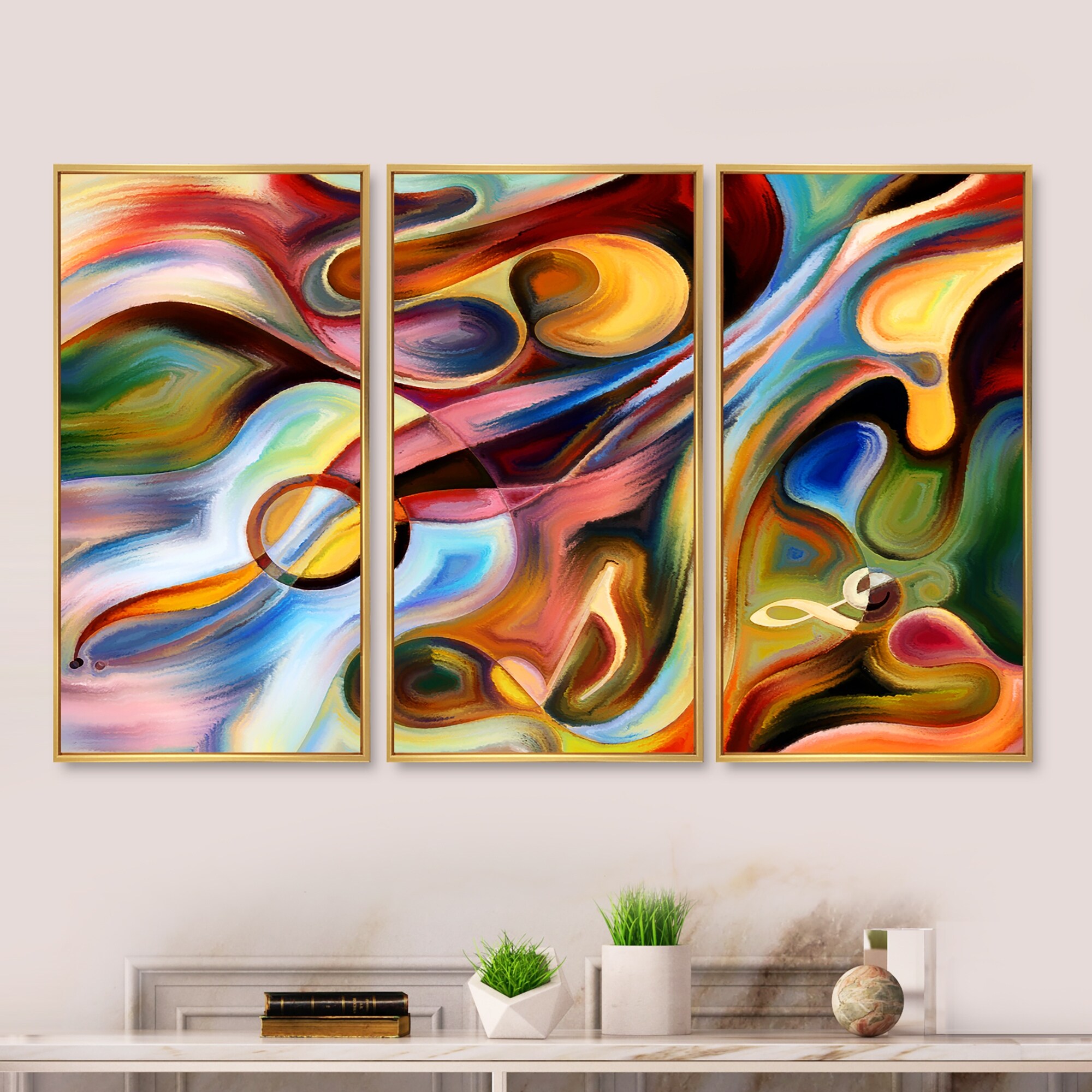 Designart "Music beyond the Frames" Abstract Framed Canvas Wall Art Print Set of 3 - 4 Colors of Frames