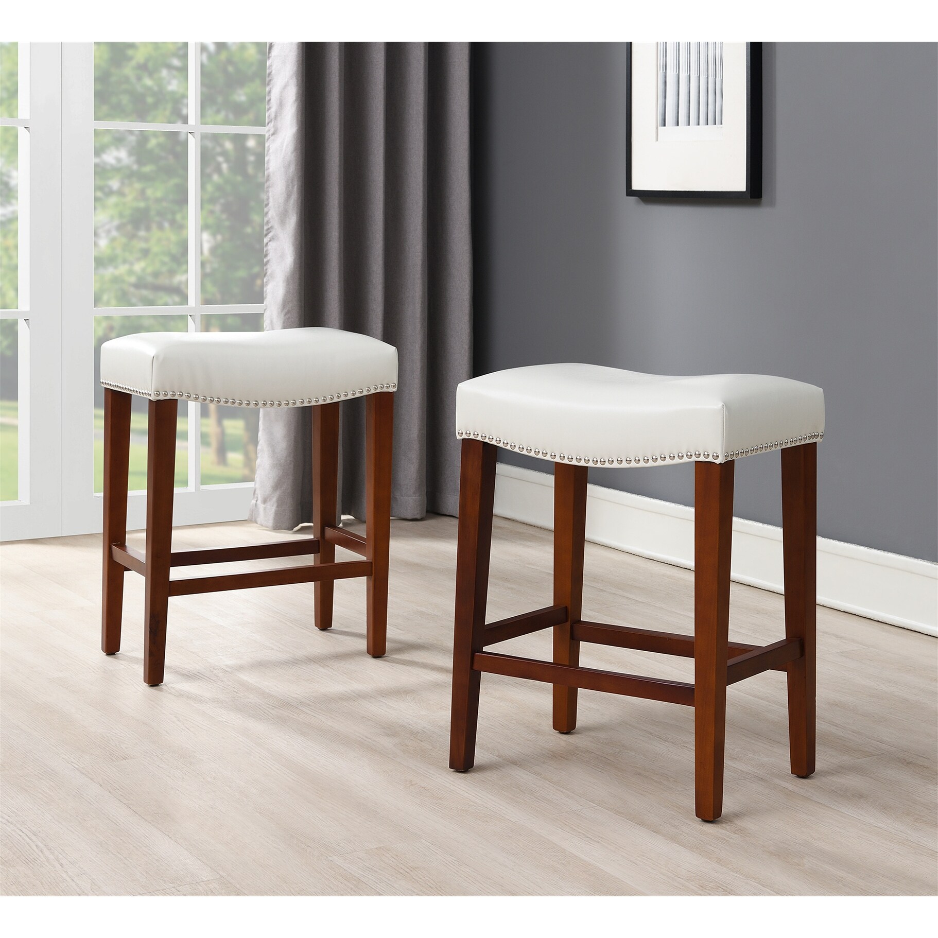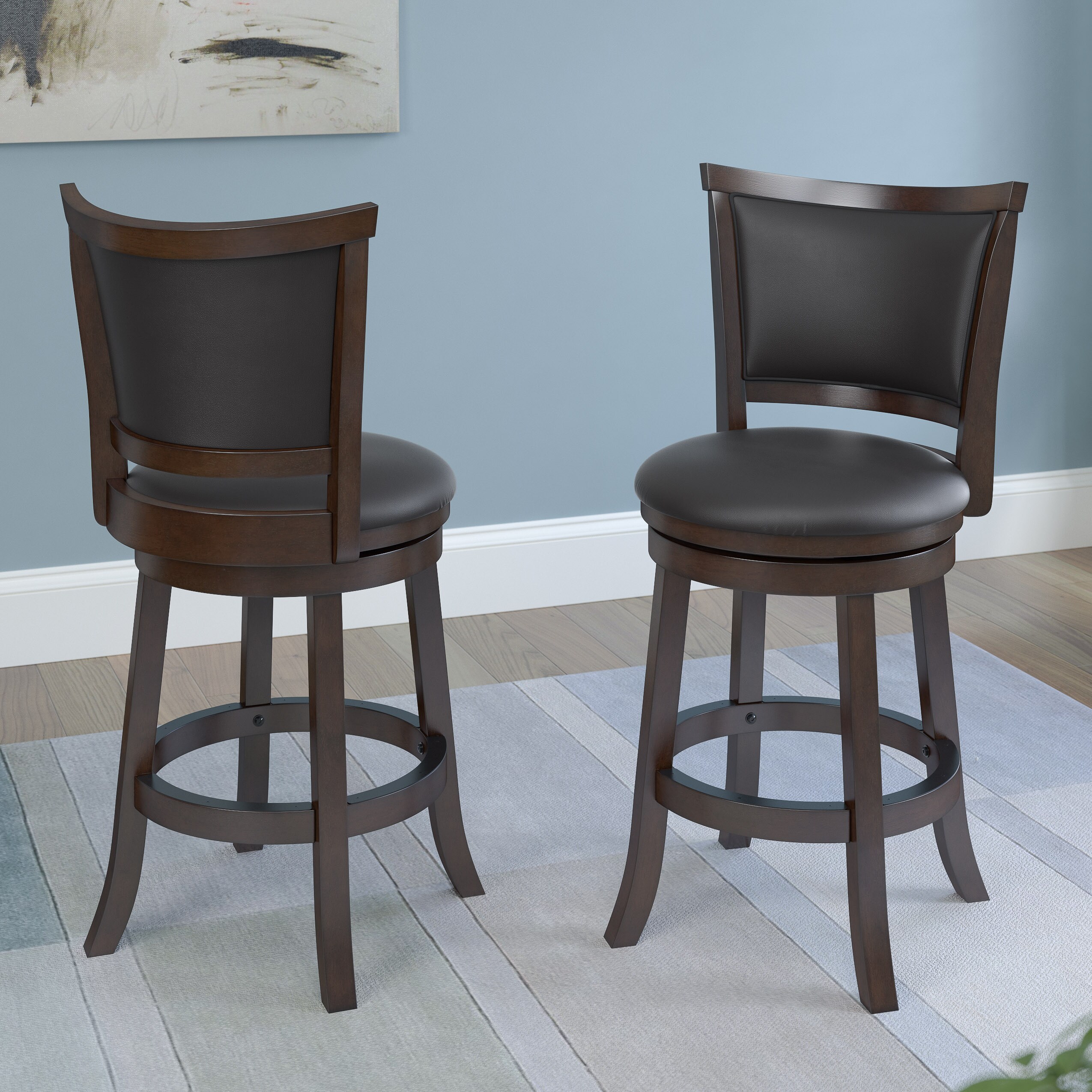 Barstool Bonded Leather 2 pcs Set Bar Stool Wooden Legs Counter Stools