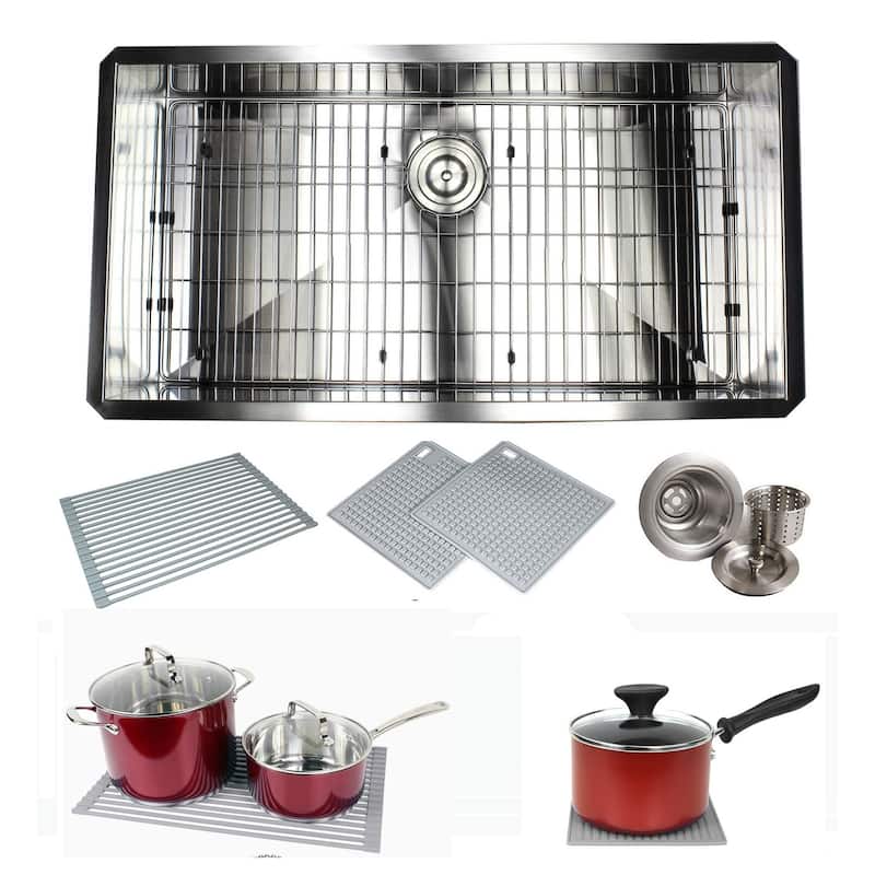 Undermount 36 in. x 19 in. x 10 in. Deep Stainless Steel 16-Gauge Single Bowl Zero Radius Kitchen Sink Combo