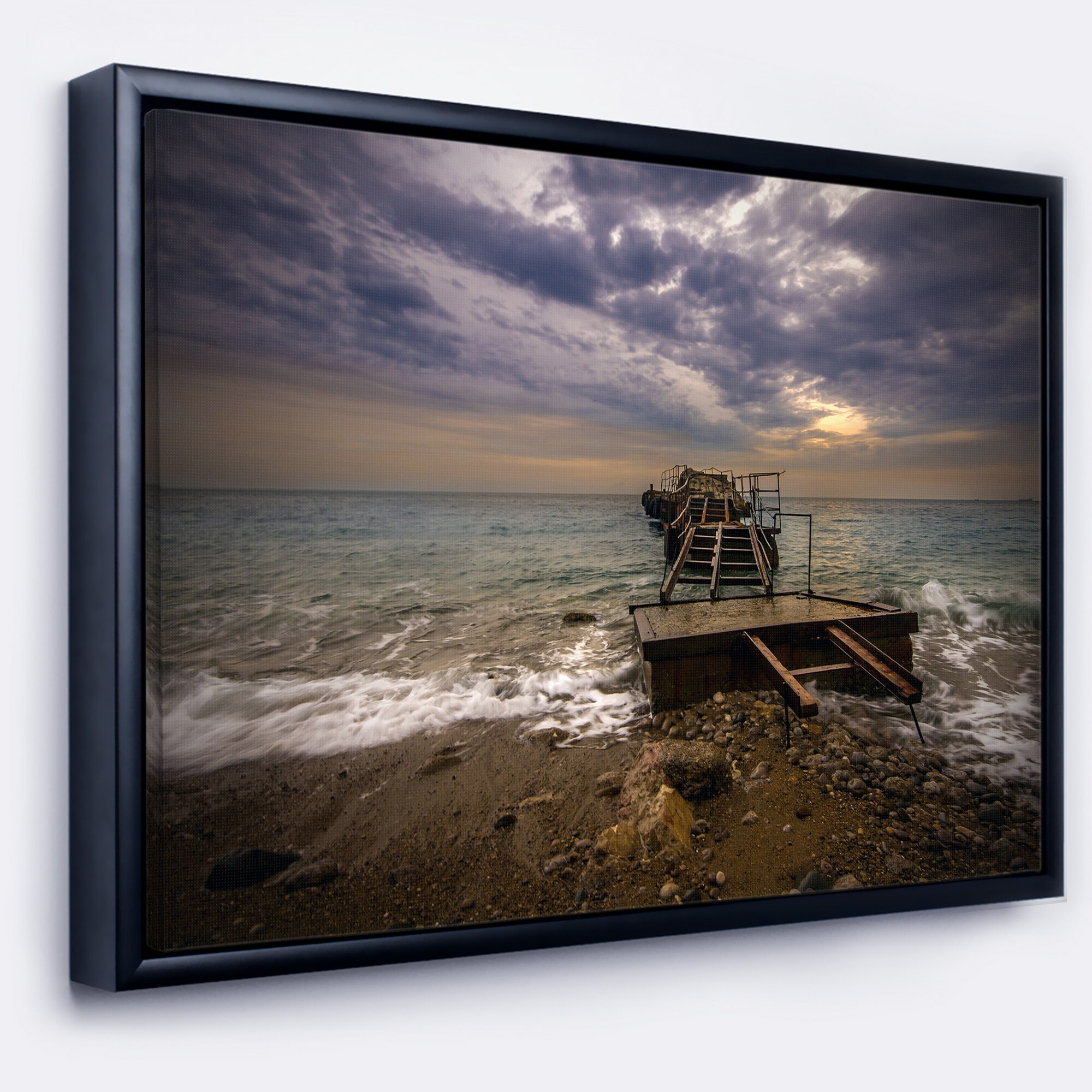 Designart "Broken Wooden Pier for Boats" Sea Bridge Framed Canvas Art Print