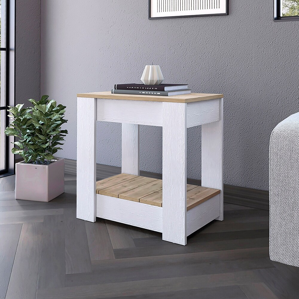 Brookings Composite Wood Indoor Modern Side Table - White And Golden