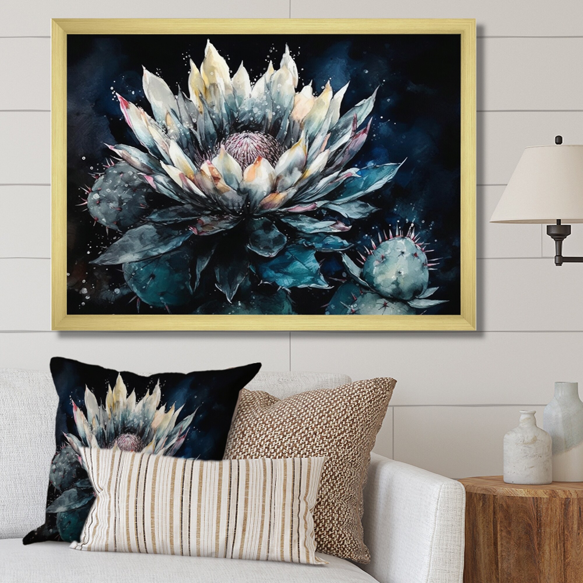 Designart "White Green Cactus Flower Iv" Floral Cactus Framed Canvas Art Print