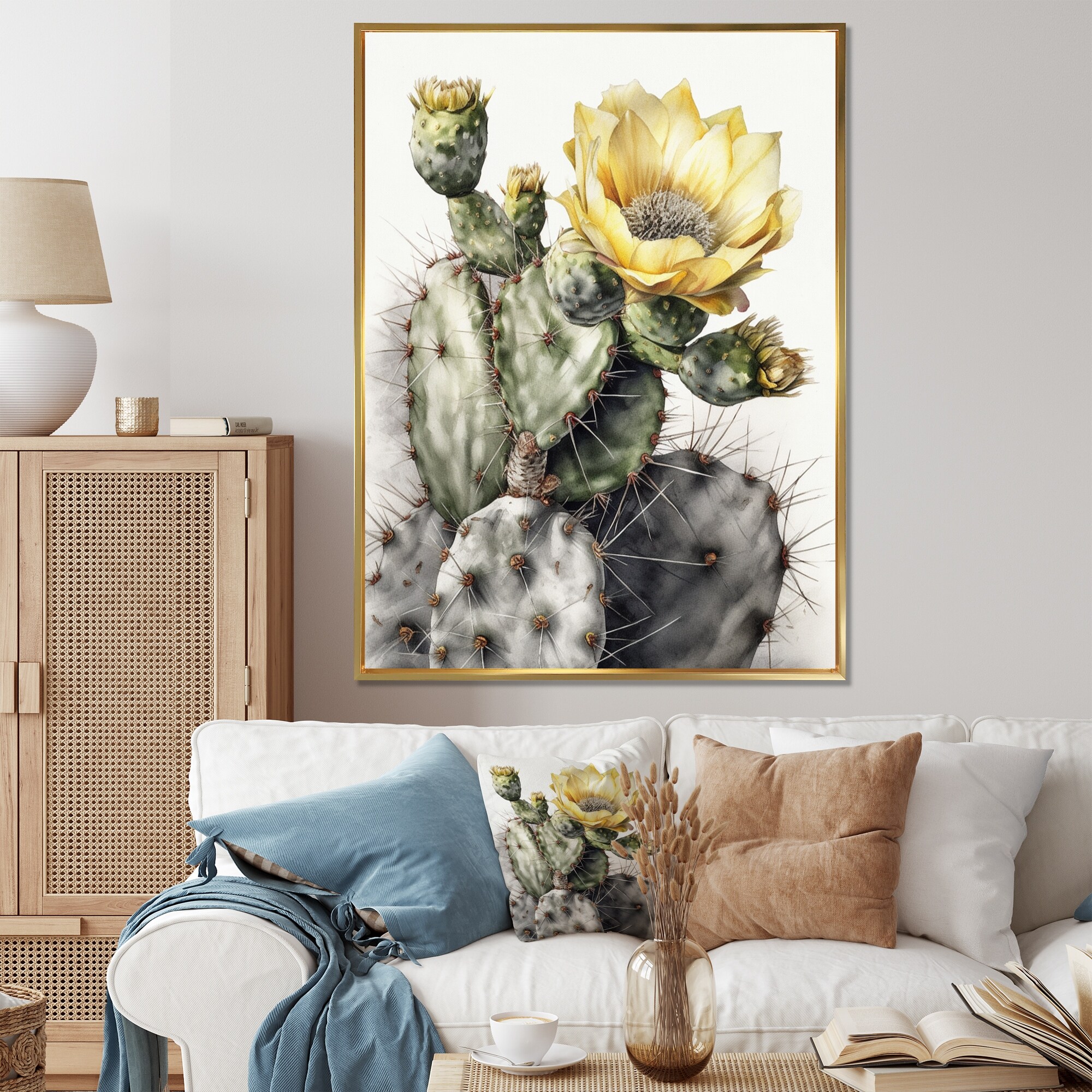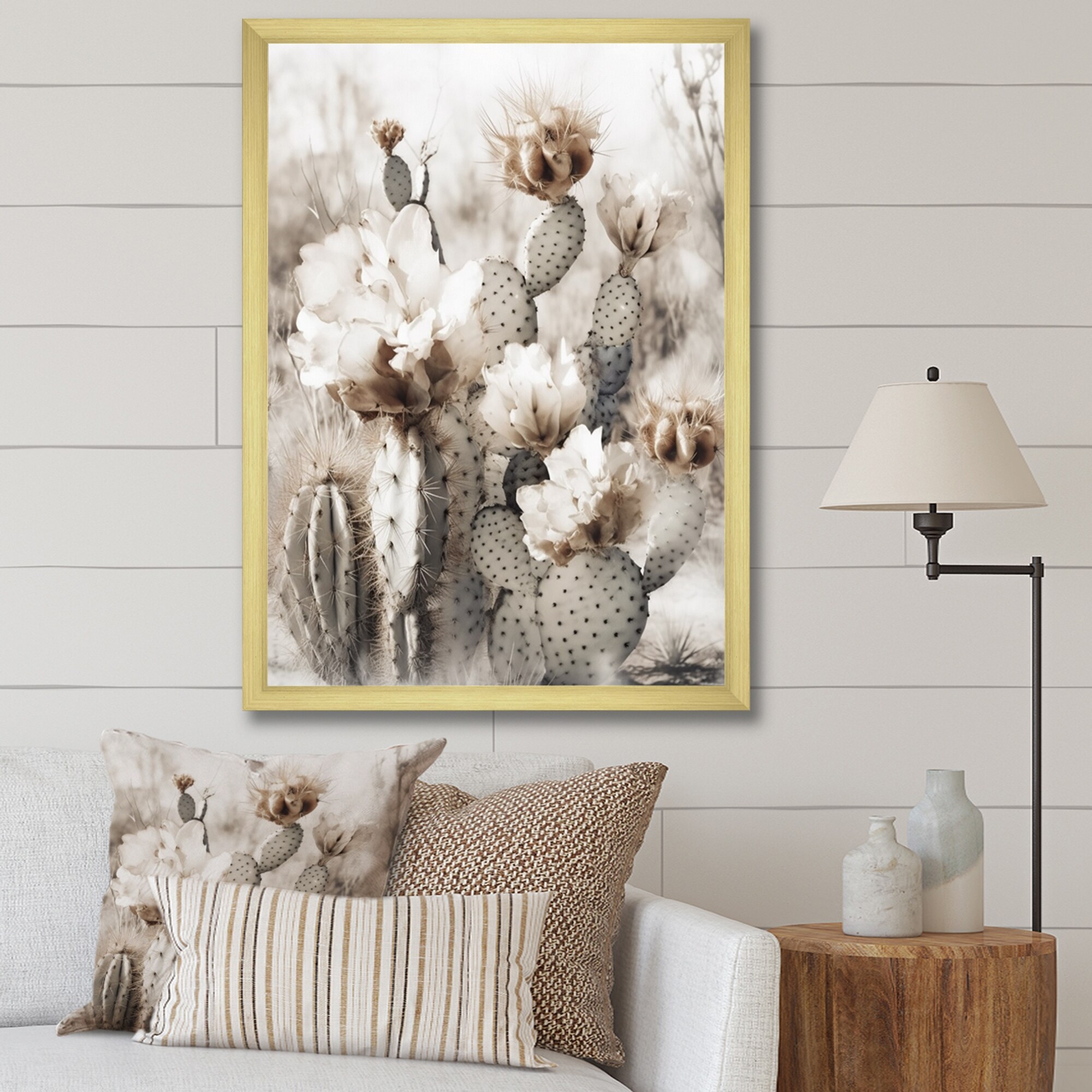 Designart "Cream Desert Cactus" Floral Cactus Framed Canvas Print