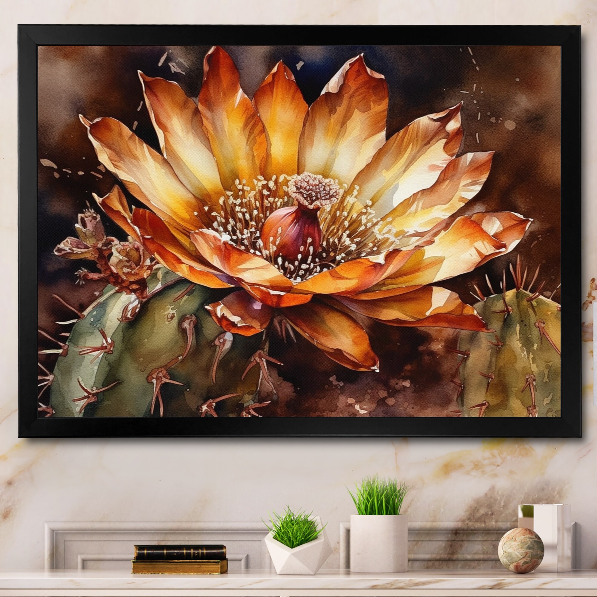 Designart "Brown Cactus Flower" Floral Cactus Framed Canvas Art Print