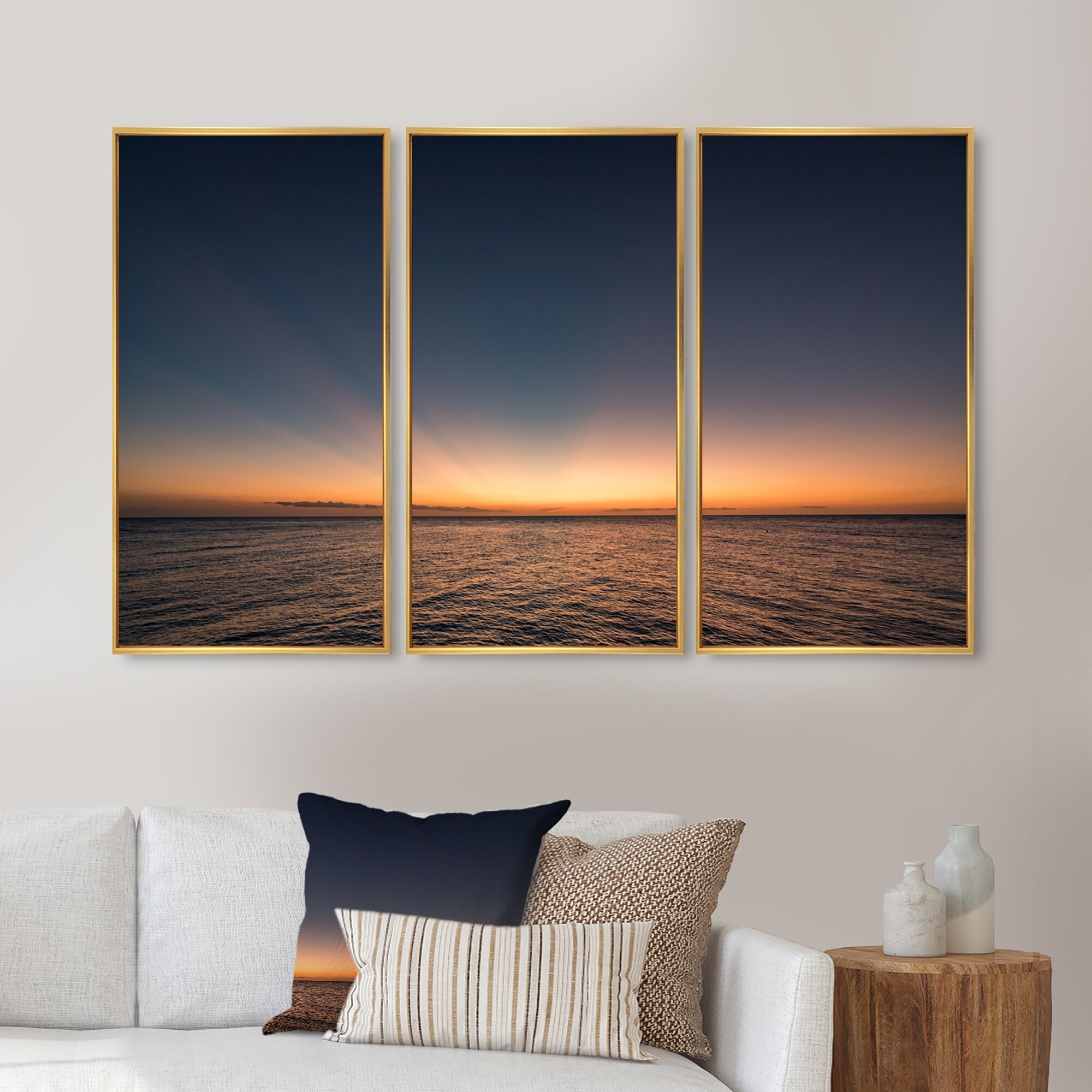 Designart "Tropical Caribbean Island Sunset II" Nautical & Coastal Framed Wall Decor Set of 3 - 4 Colors of Frames