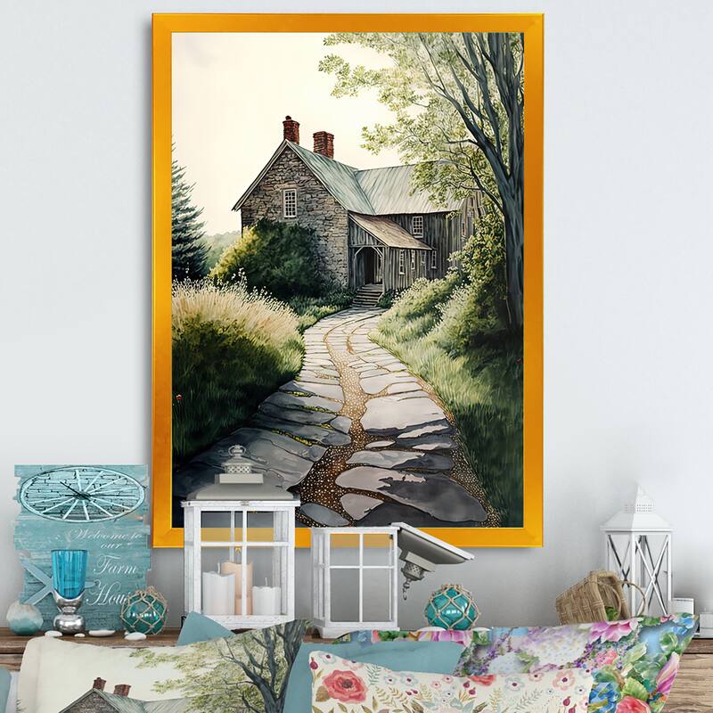 Designart "Charming Cabin And Path III" Farmhouse / Country Framed Art Print