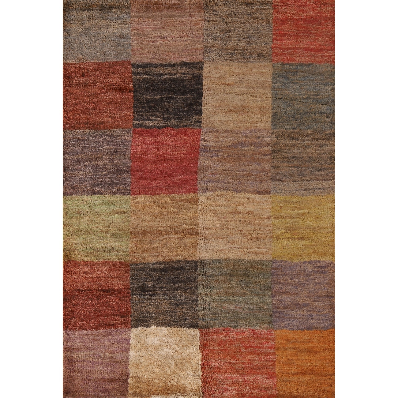 Modern Checkered Gabbeh Oriental Wool Area Rug Hand-knotted Carpet - 5'1" x 8'0"