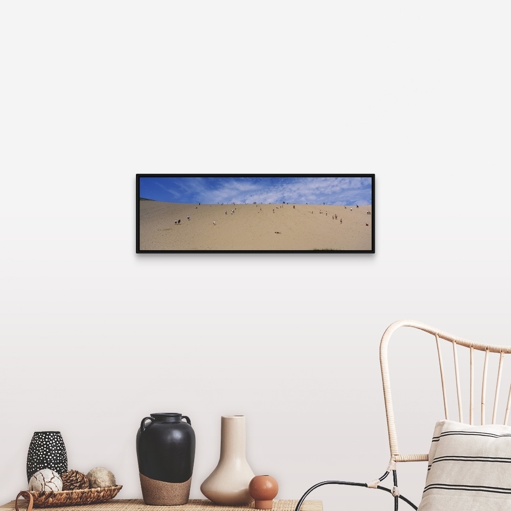 "Tourists climbing a sand dune, Sleeping Bear Dunes National Lakeshore, Michigan" Black Float Frame Canvas Art