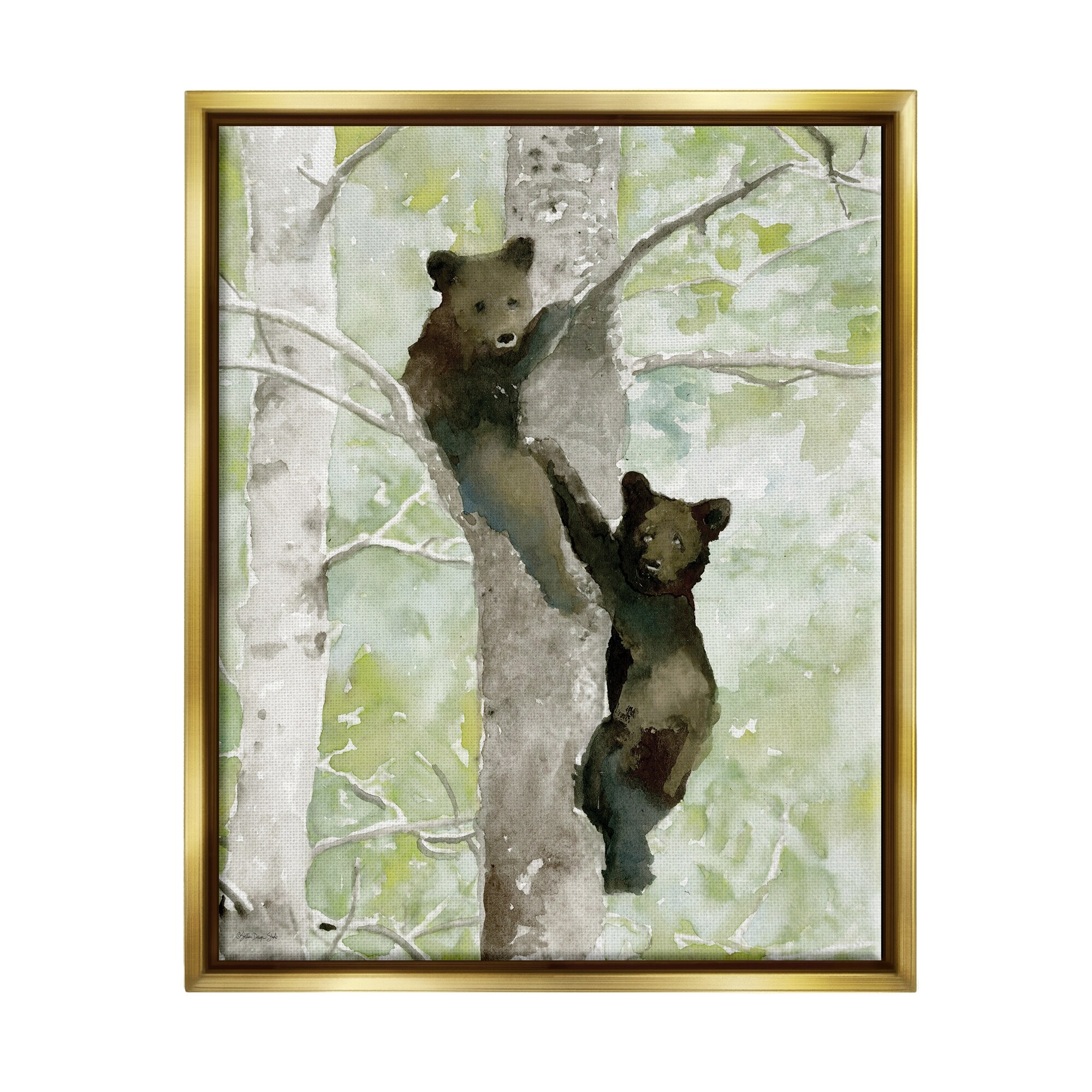 Stupell Industries Bear Cubs Climbing Tree Nature Framed Floater Canvas Wall Art by Stellar Design Studio