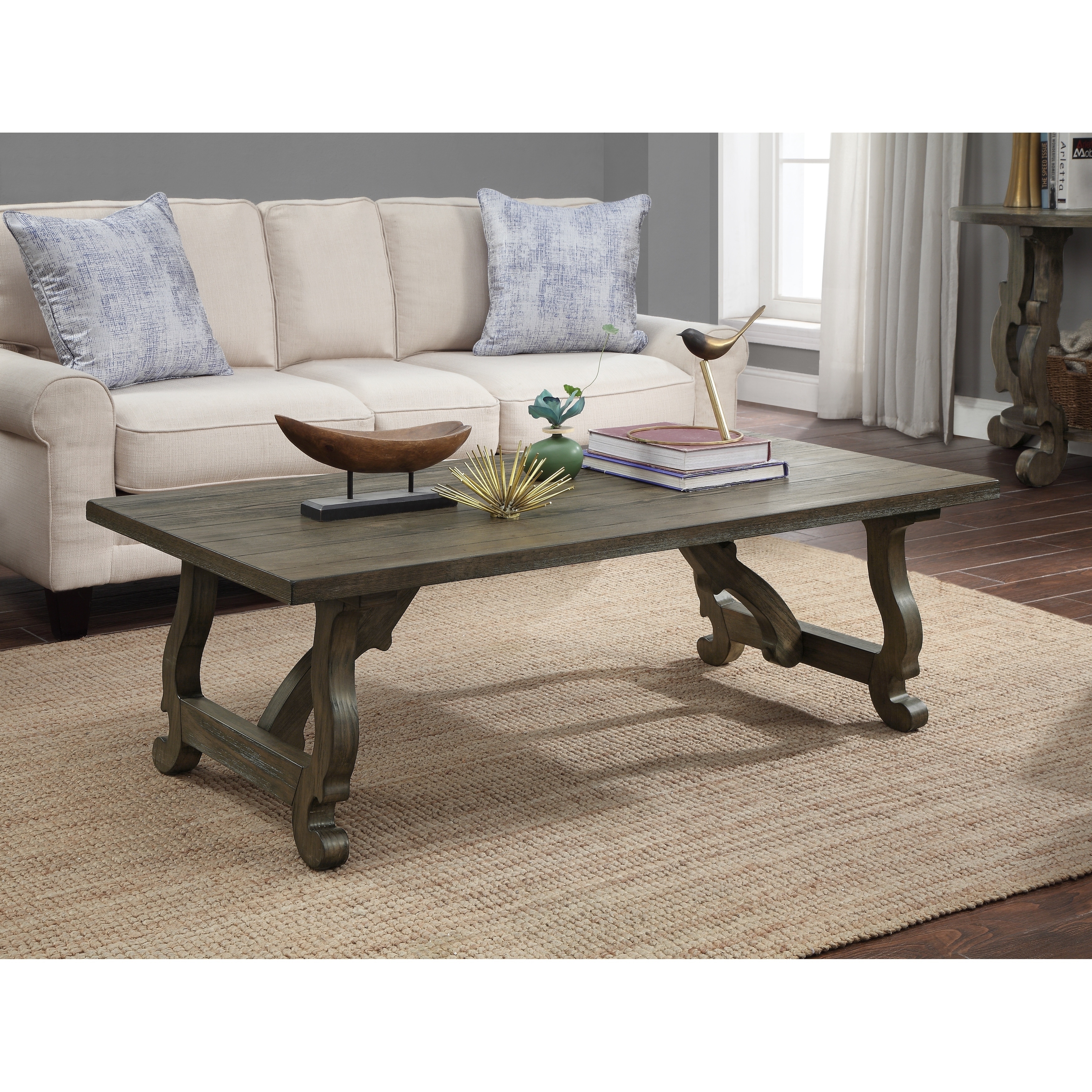 Modern Farmhouse Dusty Charcoal Distressed Oversized Square Cocktail Table
