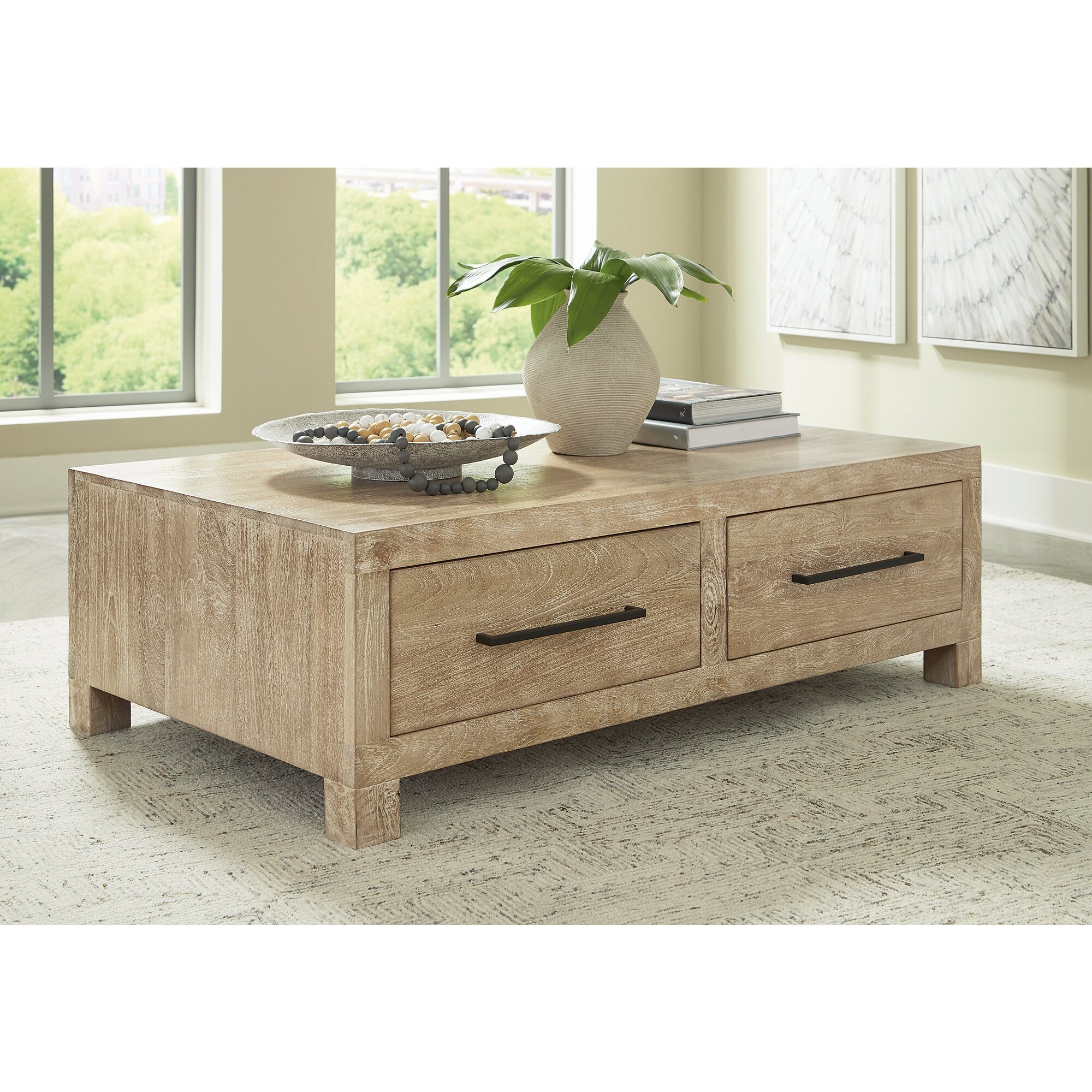 Somette Wooden Cocktail Table with 2 Drawers