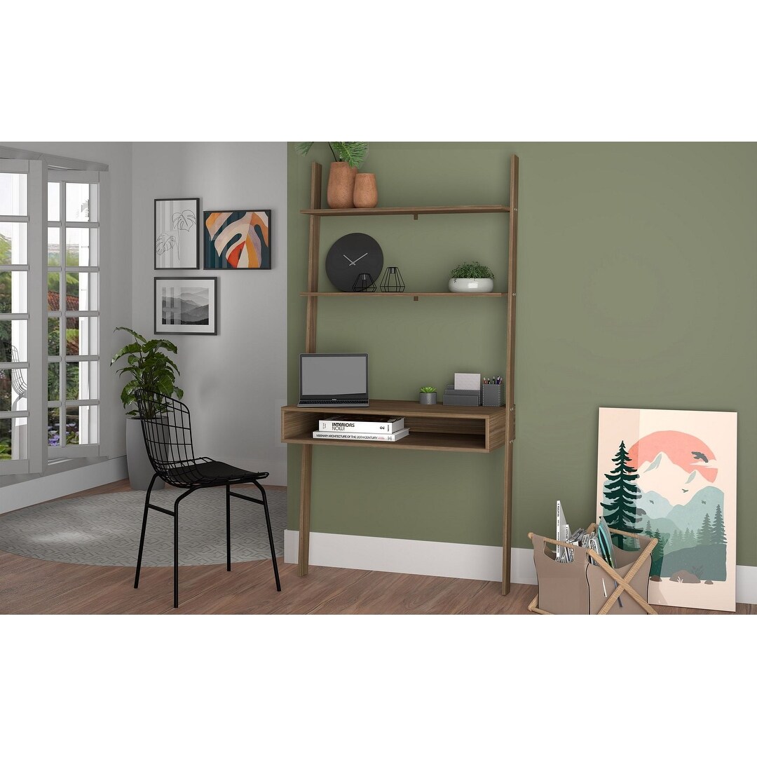 Cooper Ladder Desk with 2 Floating Shelves in Oak
