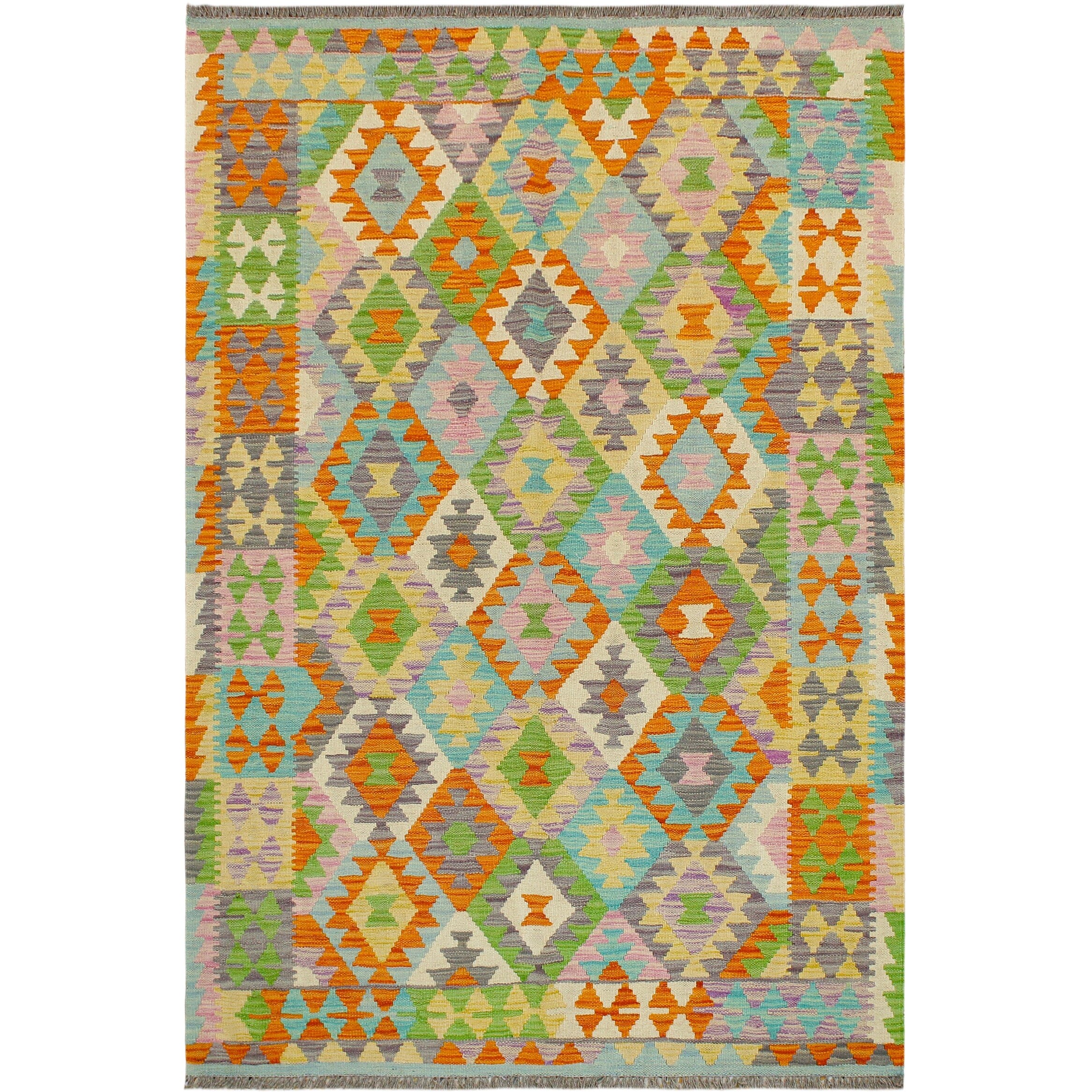 Shabby Chic Turkish Cooper Orange Blue Kilim Wool Rug - 4 ft. 1 in. X 5 ft. 8 in.
