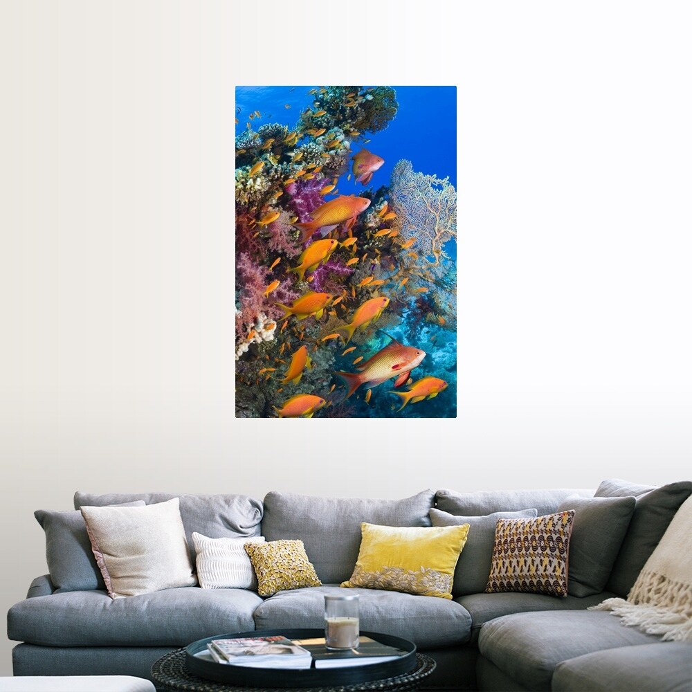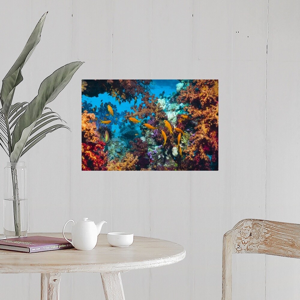 Easy Art Prints Panoramic Images's 'Coral Reef and School of Fish, Undersea view' Premium Canvas Art