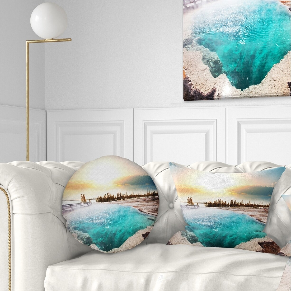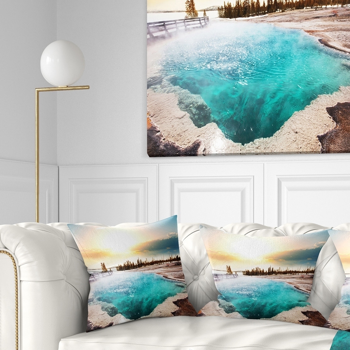 Designart 'Crystal Clear Lake in Yellowstone' Landscape Printed Throw Pillow