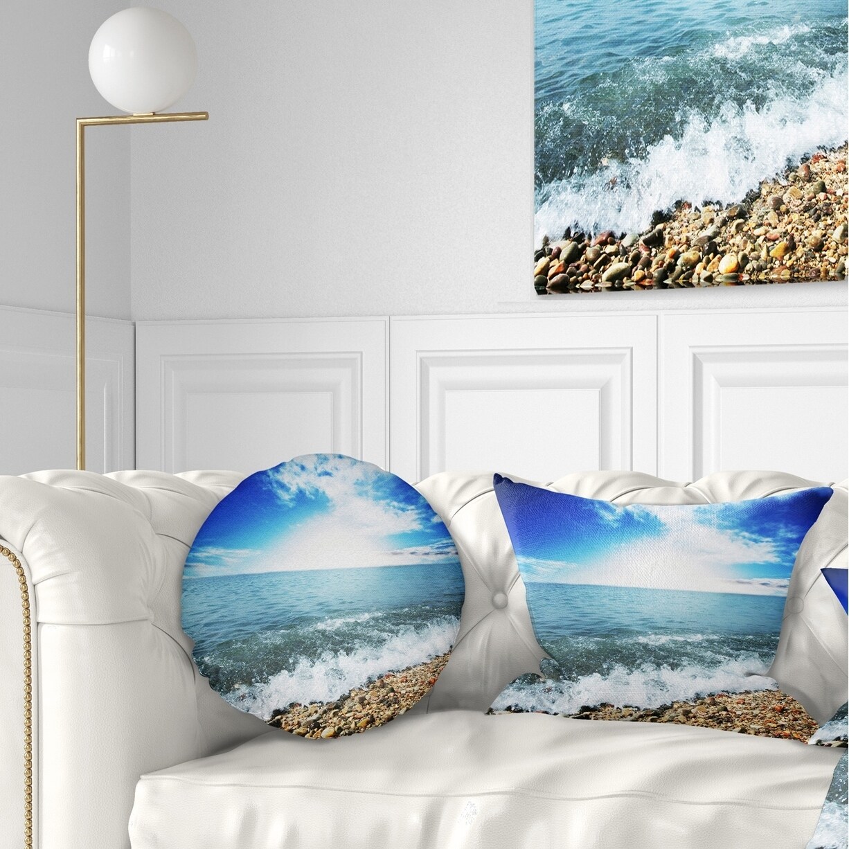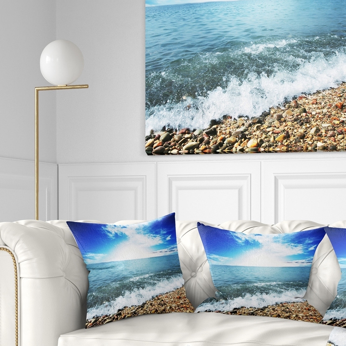 Designart 'Crystal Clear Sea Waves on Beach' Modern Beach Throw Pillow