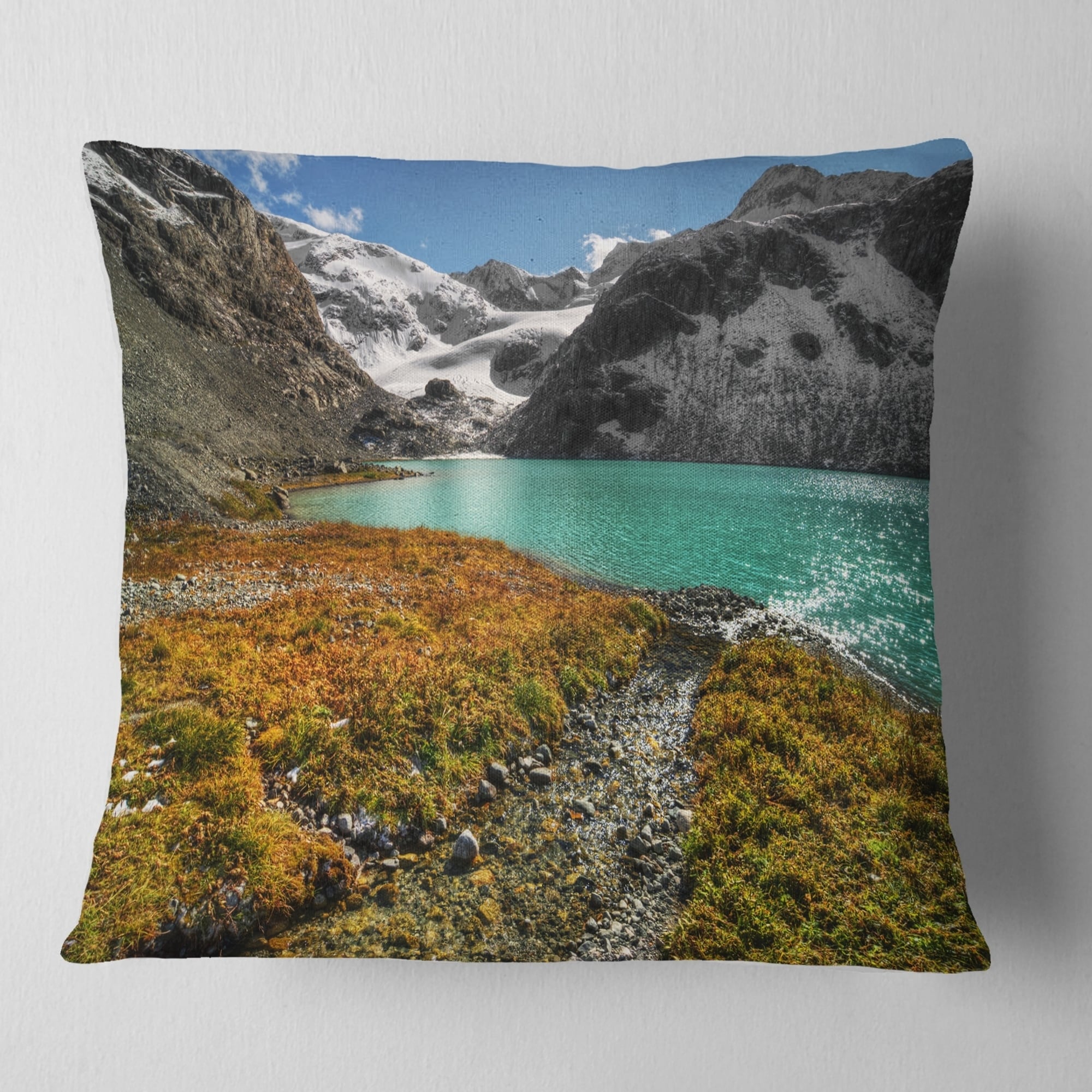 Designart 'Crystal Clear Lake among Mountains' Landscape Printed Throw Pillow