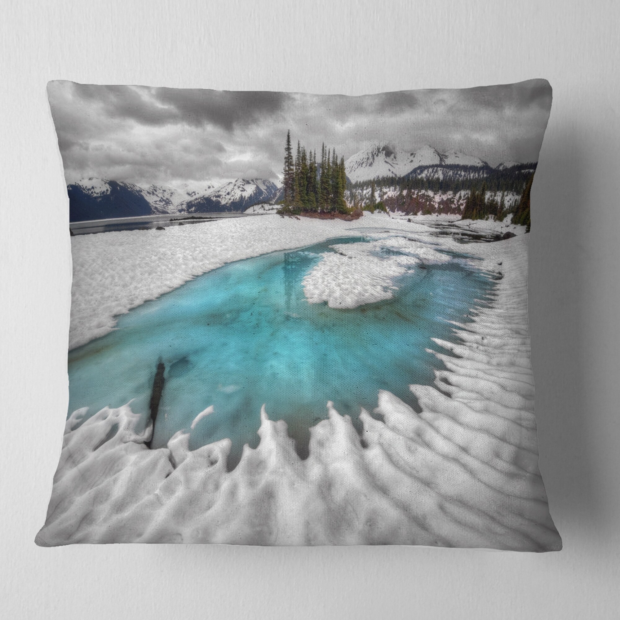 Designart 'Frosted Crystal Clear Lake' Landscape Printed Throw Pillow