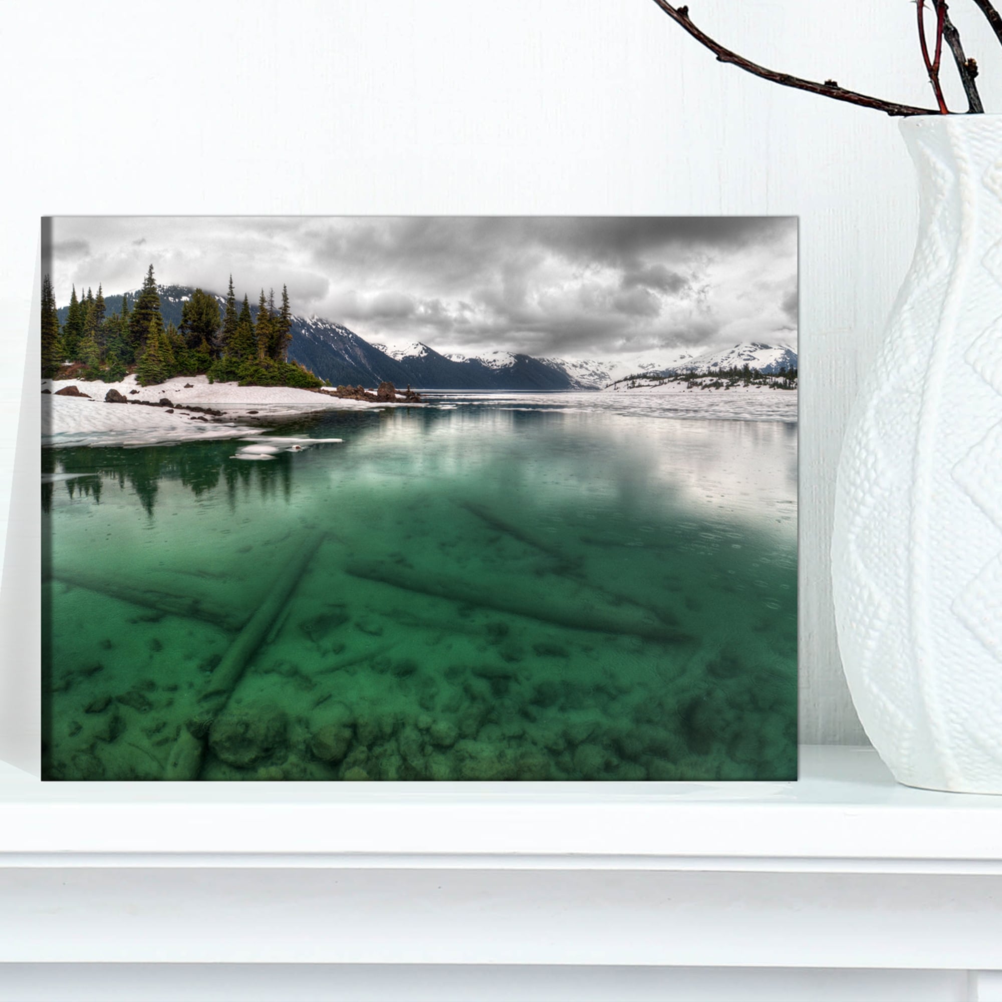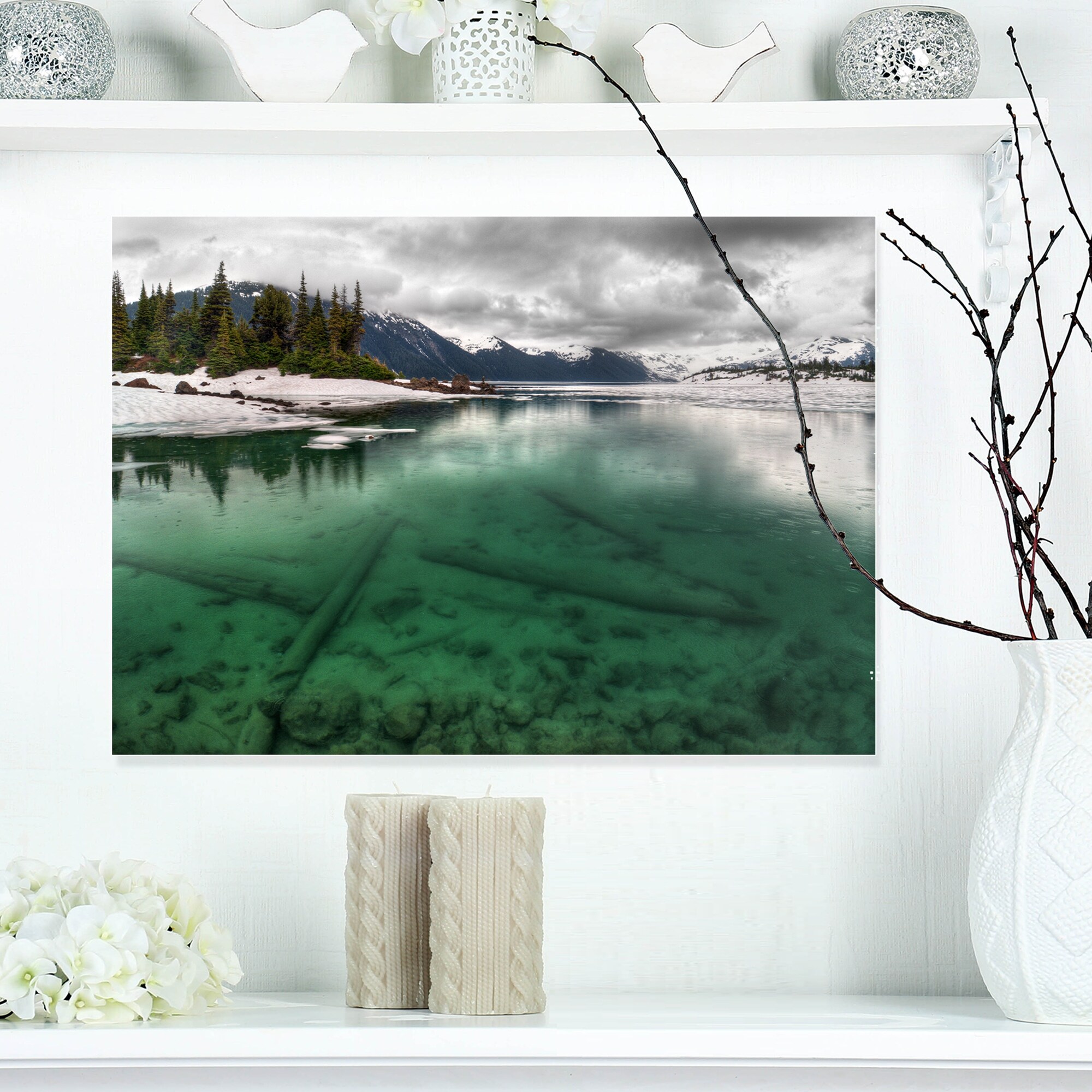 Designart "Frosted Crystal Clear Lake" Large Landscape Art Canvas Print - White