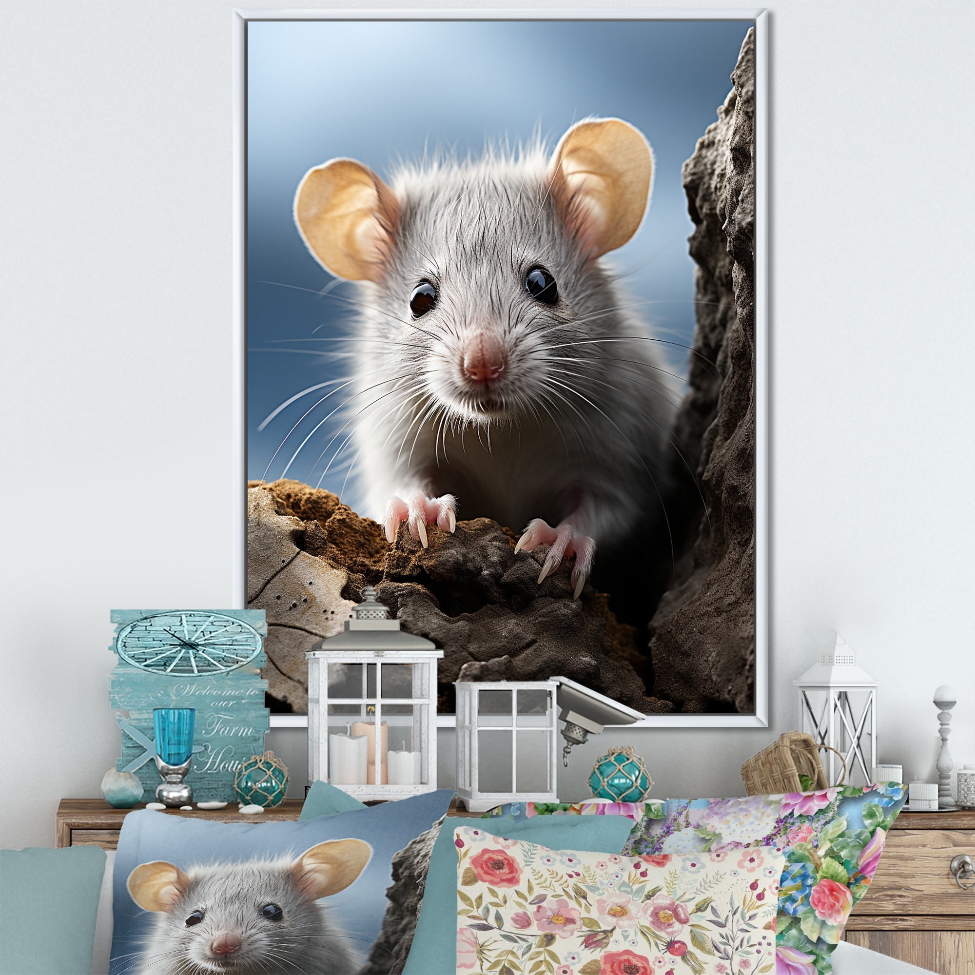 Designart "White Cute Rodent Portrait II" Rodent Framed Wall Decor