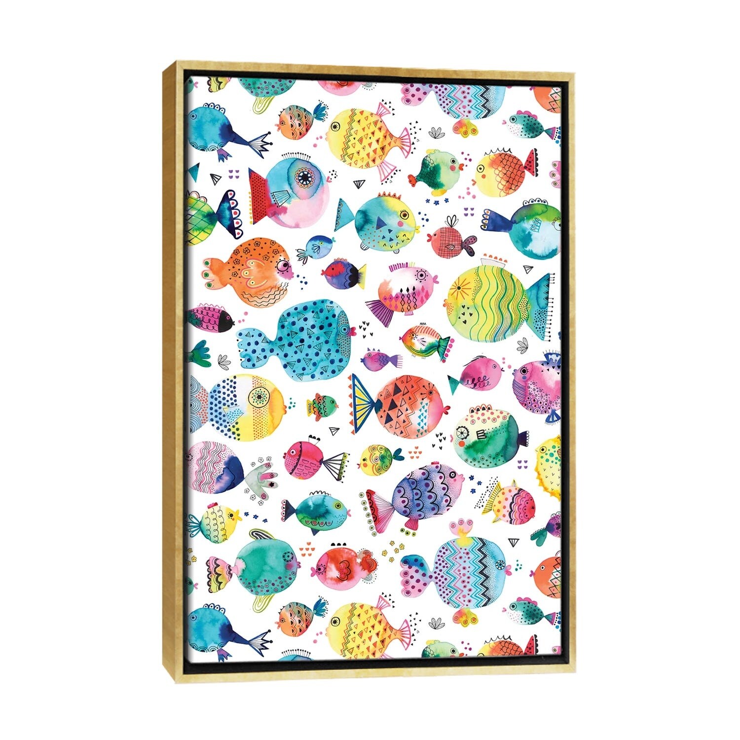 iCanvas "Cute Puffer Fishes Watercolor Multi" by Ninola Design Framed Canvas Print