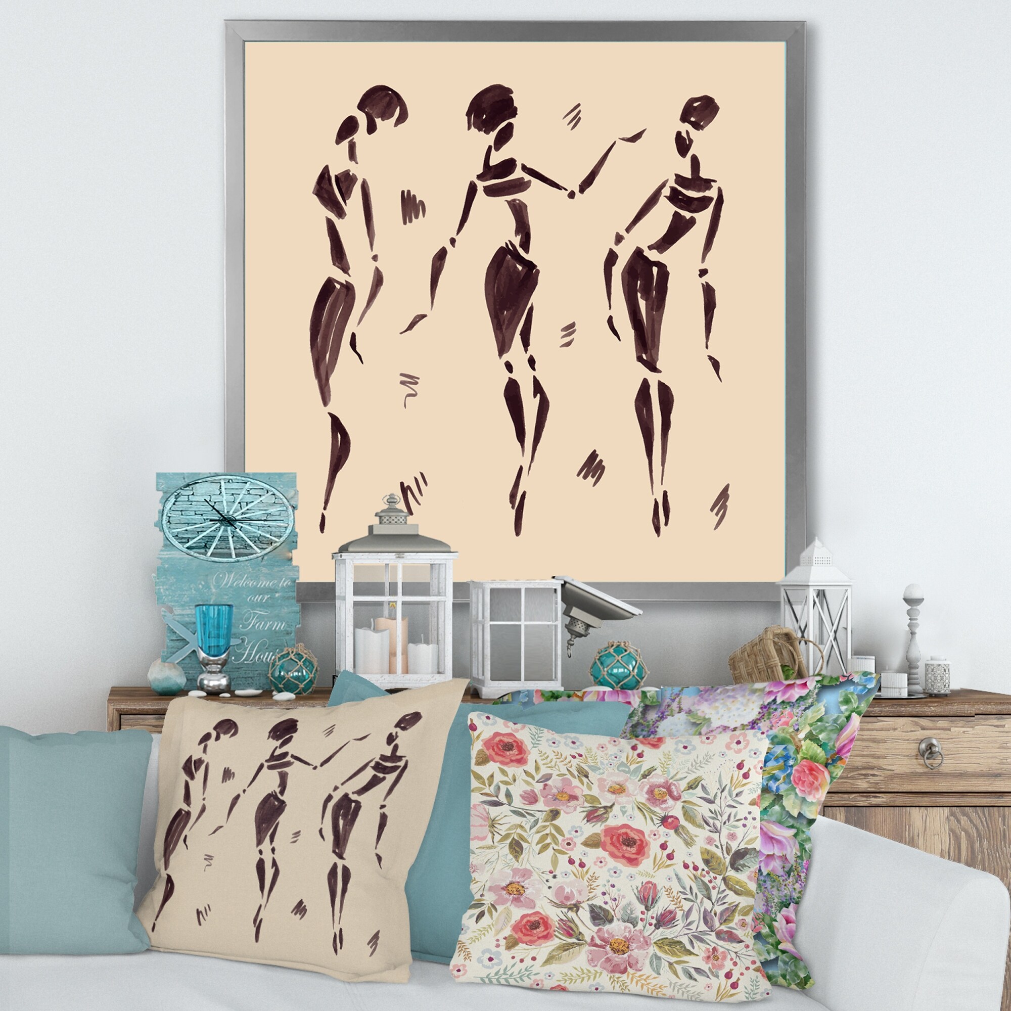 Designart "Abstract Brown Dancers" Glam Framed Art Print