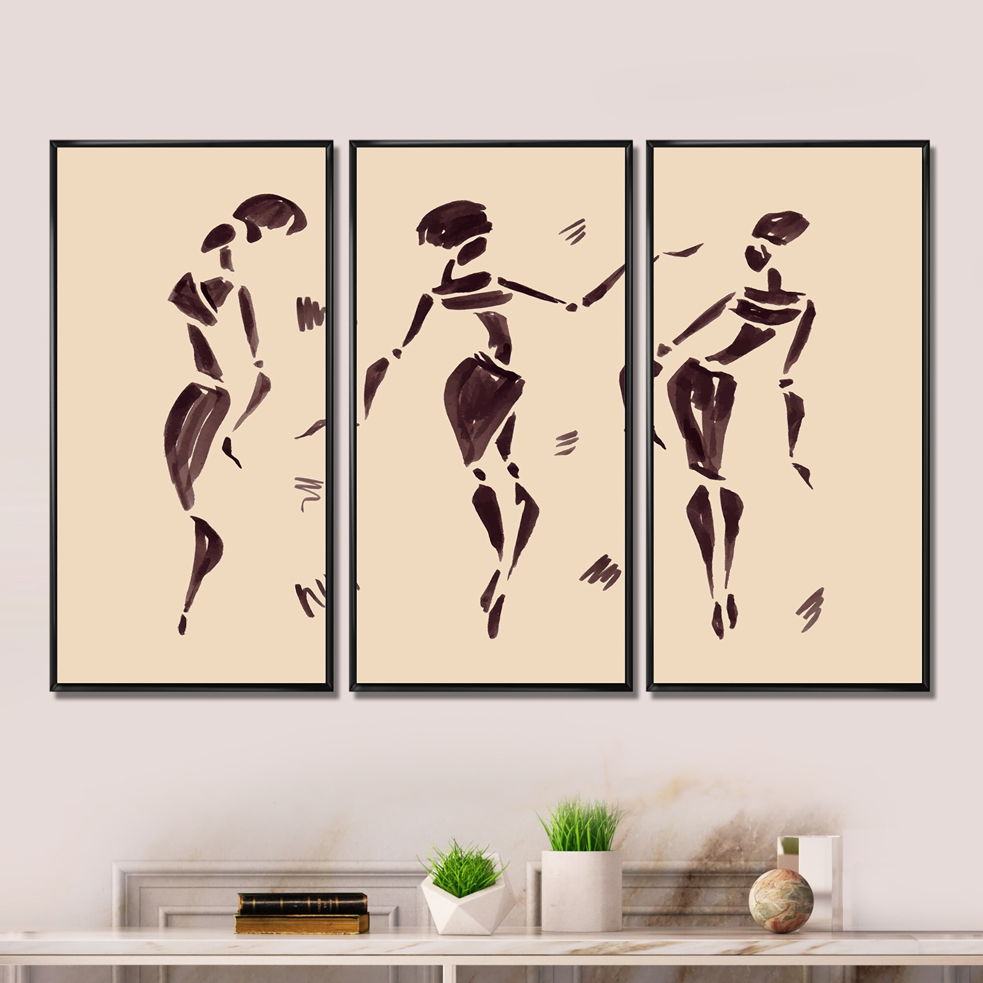 Designart "Abstract Brown Dancers" Glam Framed Wall Art Set of 3 - 4 Colors of Frames